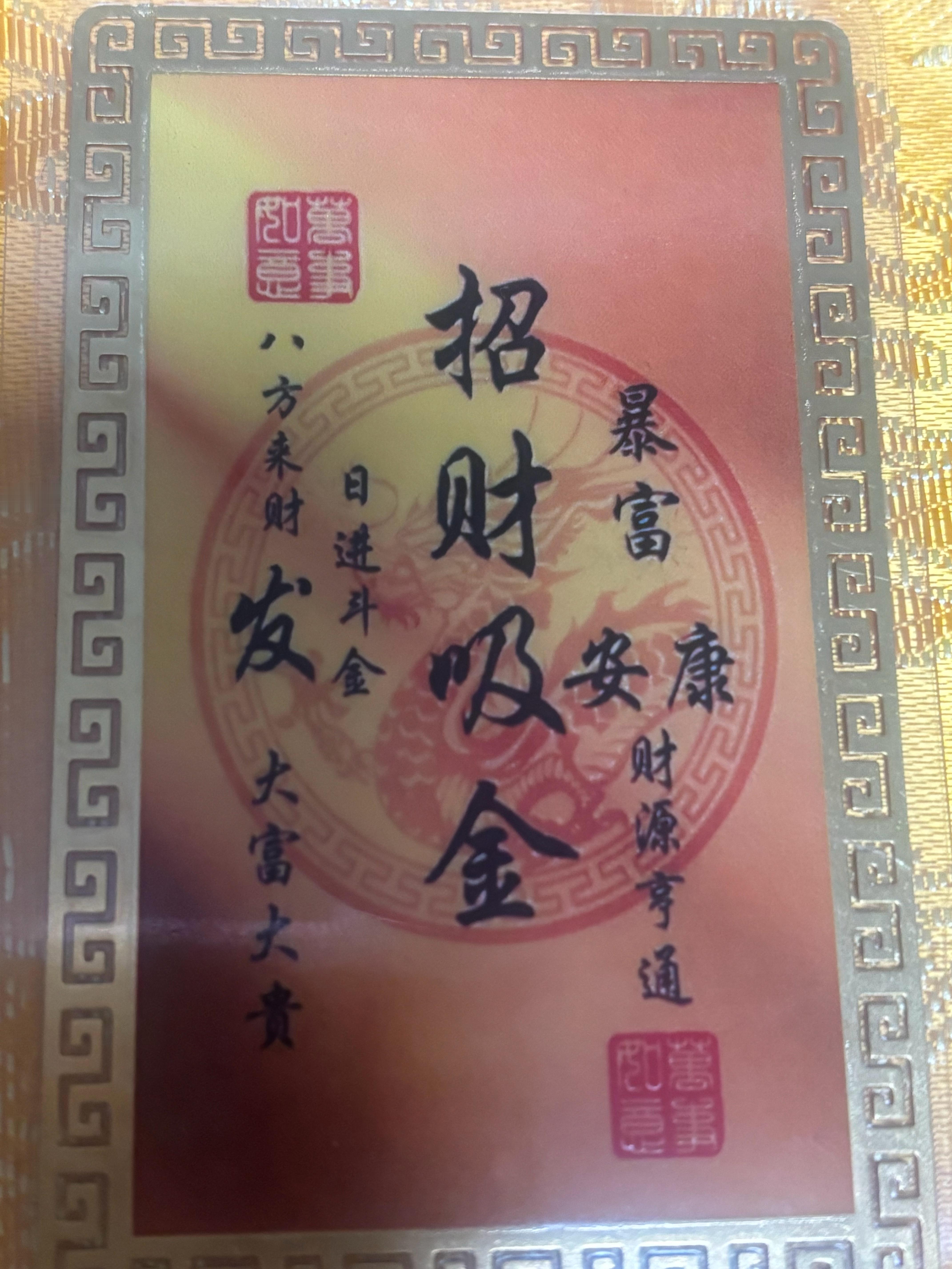 我的宝贝总算到了,持仓大涨符,招财吸金符、牛拉着聚宝盆、开光符。未来我的股吃香喝辣。买什么涨什么。