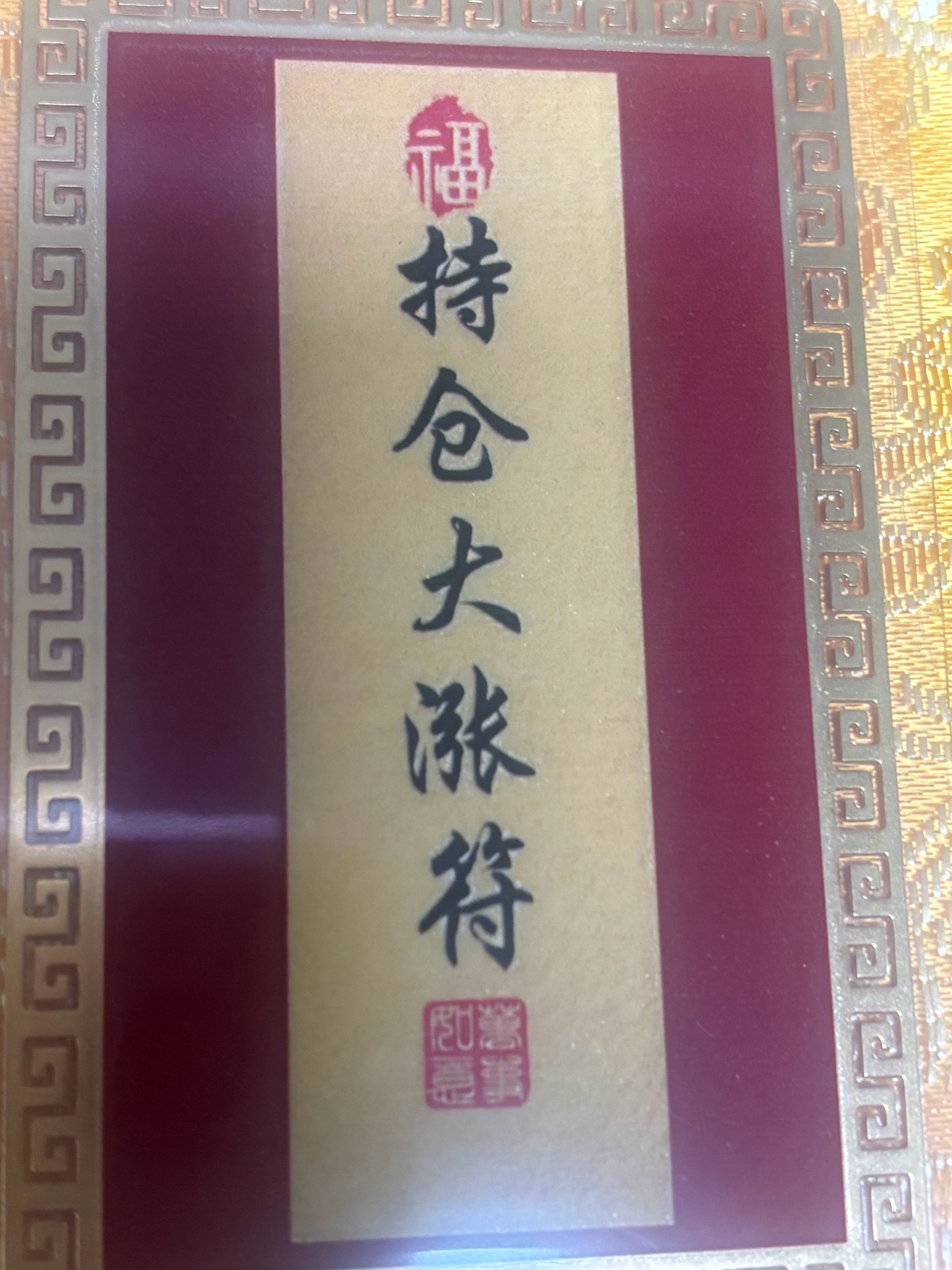 我的宝贝总算到了,持仓大涨符,招财吸金符、牛拉着聚宝盆、开光符。未来我的股吃香喝