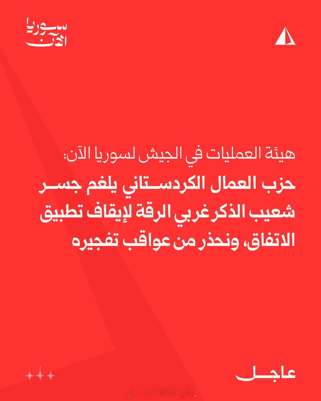据报道,在HTS政权部队进入拉卡省西南部的村庄后,库尔德武装在迪布西·阿夫南桥埋设了炸药,以阻止HTS方面撕毁协议后直接冲进塔布卡。叙利亚局势