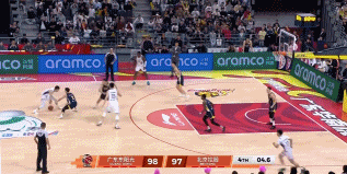 球进了!绝杀!廖三宁你太牛了!最后一攻持球压阵,转身突破直接甩开防守,迎着补防高难度抛投出手,皮球空心入网!绝杀!这记大心脏抛投直接杀死比赛广东男篮vs北控男篮