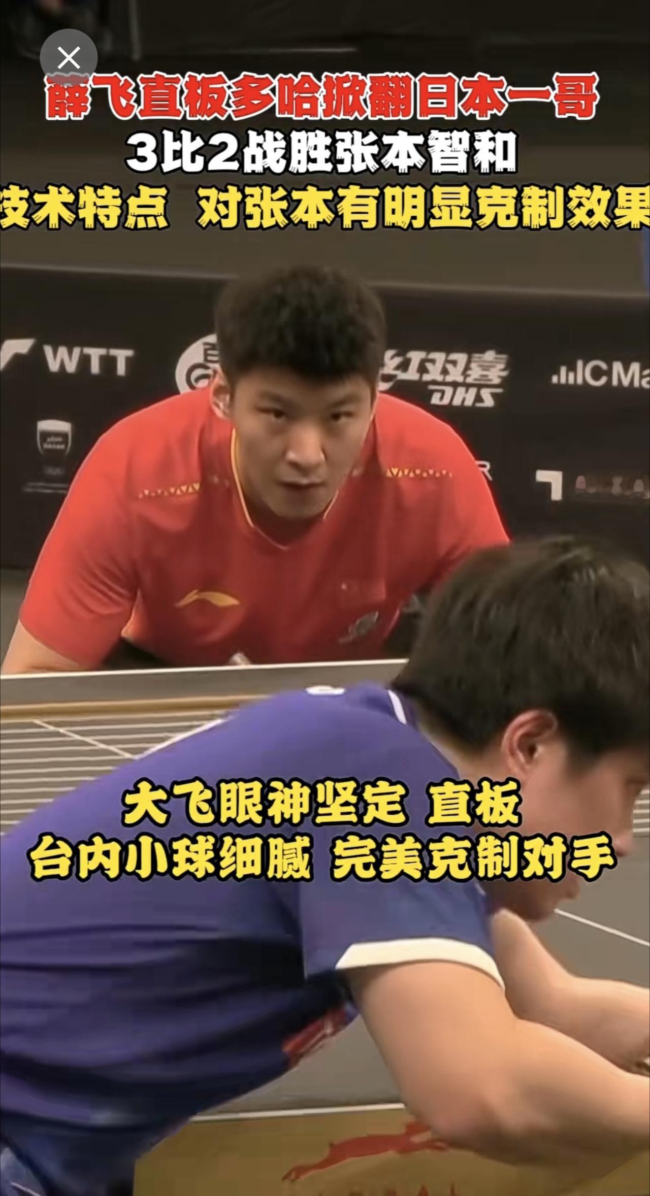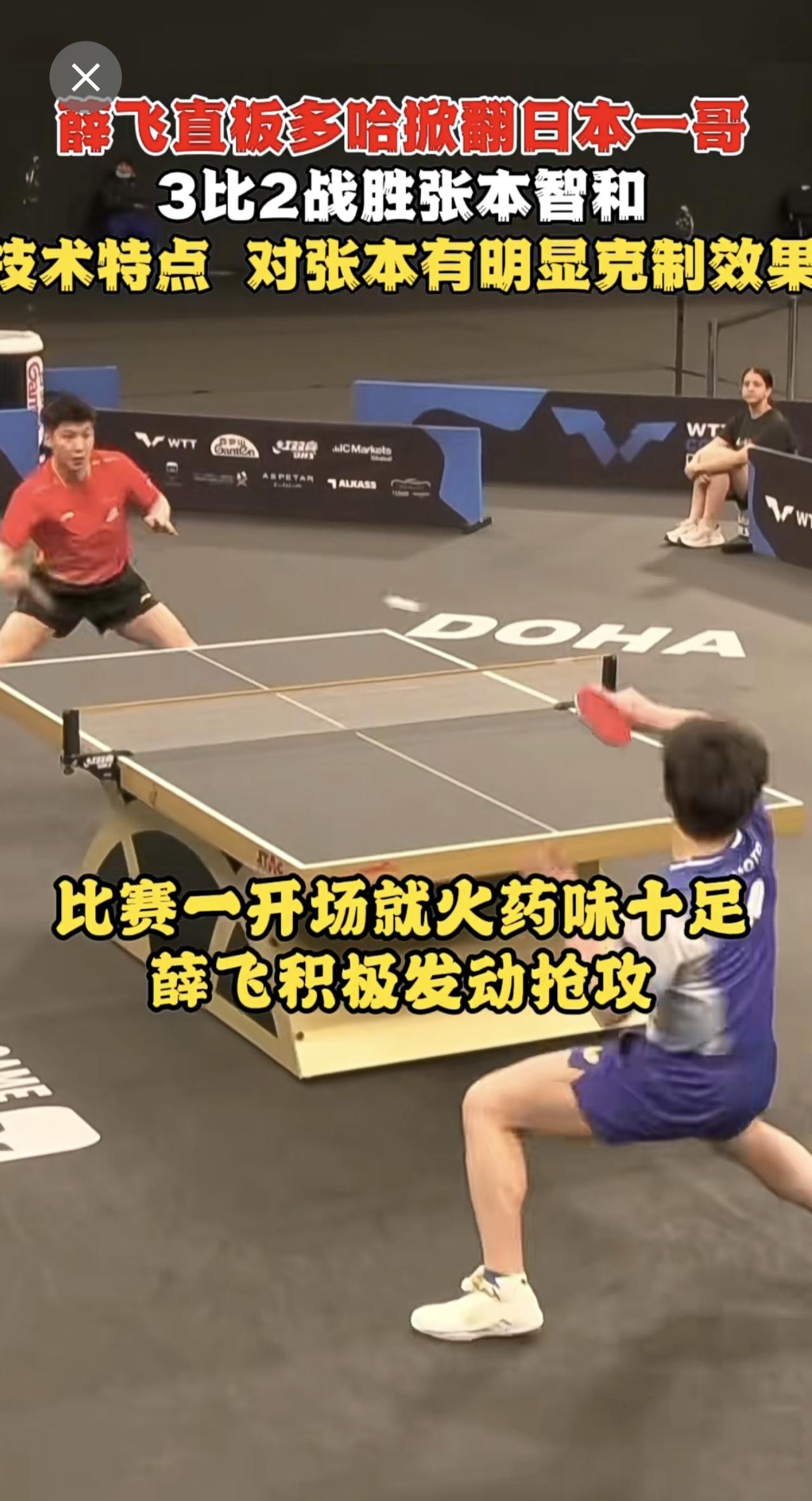 薛飞直板多哈掀翻日本一哥 3比2战胜张本智和🔥技术特点 对张本有明显克制效果!薛飞此前两战两胜 把对手打得没脾气 这次碰面继续保持全胜战绩。