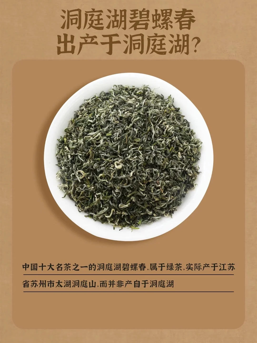 中国十大名茶之一的洞庭湖碧螺春,属于绿茶,产于江苏省苏州市太湖洞庭山
