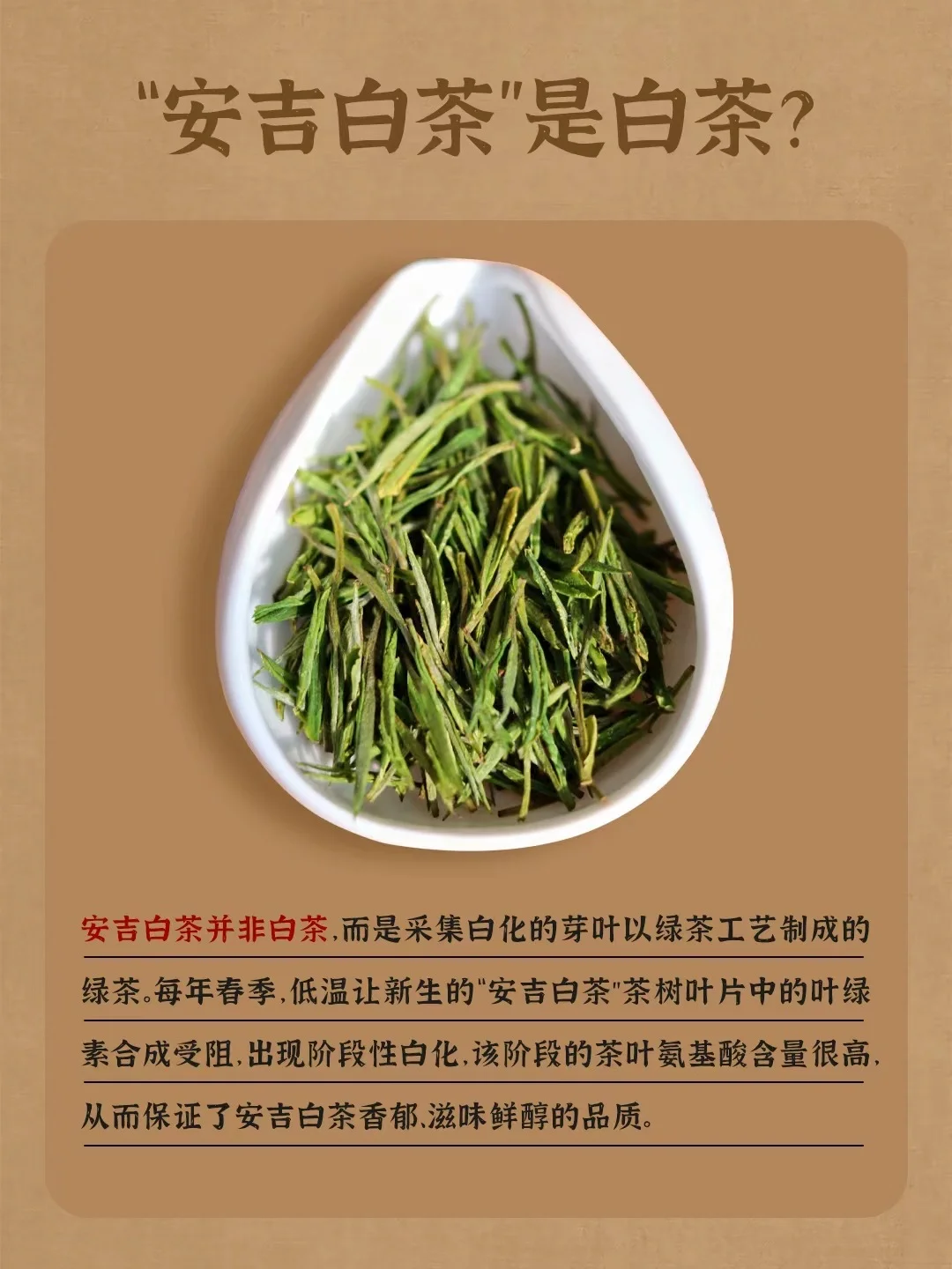 安吉白茶并非白茶,而是采集白化的芽叶以绿茶工艺制成的绿茶
