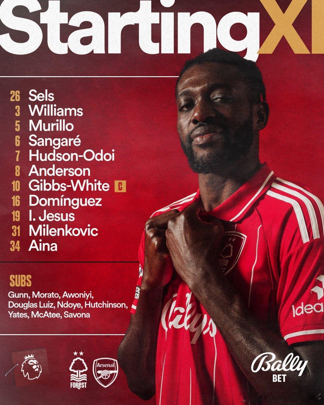 诺丁汉森林vs阿森纳 首发阵容⬇️ 1:30开赛!诺丁汉森林首发:26-赛尔斯、3-内科·威廉姆斯、5-穆里略、6-桑加雷、7-奥多伊、8-安德森、10-吉布斯·怀特、16-多明戈斯、19-伊戈尔·热苏斯、31-米伦科维奇、34-埃纳阿森纳首发:1-拉亚、2-萨利巴、4-本·怀特、6-加布里埃尔、12-廷贝尔、8-厄德高、36-苏比门迪、41-赖斯、11-马丁内利、14-哲凯赖什、20-马杜埃凯英超联赛