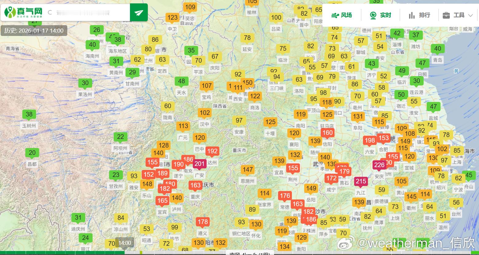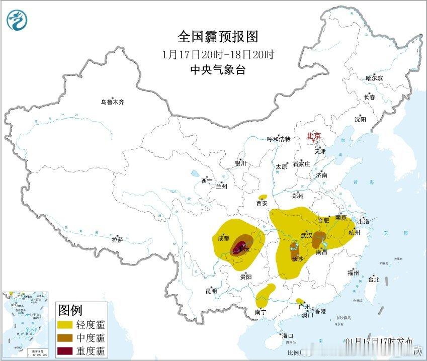 【雾 霾 沙尘】今晚到明天,四川盆地可能还会出现雾霾混杂的情况。夜间到上午湿度大的时段,四川东部和南部、重庆西部等地有大雾,局地有能见度不足200米的强浓雾。从空气质量看,四川盆地的污染持续。安徽一带因为偏东风的进入,安徽东部的污染减轻,部分污染向江西湖北湖南传输。预计19-20日因为降水和冷空气的到来。四川重庆湖南湖北江西安徽的霾有望被清除。另外17日夜间至18日,受冷空气大风影响,新疆南部和东部、青海北部等地有沙尘天气。