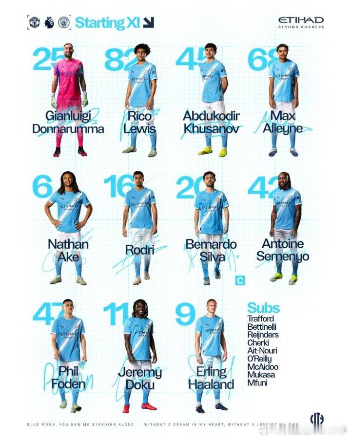曼联vs曼城 首发阵容⬇️ 20:30开赛!曼联首发:31-拉门斯、2-达洛特、5-马奎尔、6-利桑德罗·马丁内斯、13-多古、23-卢克·肖、18-卡塞米罗、37-梅努、8-B费、16-阿玛德、19-姆伯莫曼城首发:25-多纳鲁马、6-阿克、45-胡桑诺夫、68-阿莱恩、82-刘易斯、16-罗德里、20-B席、42-塞梅尼奥、9-哈兰德、11-多库、47-福登英超联赛