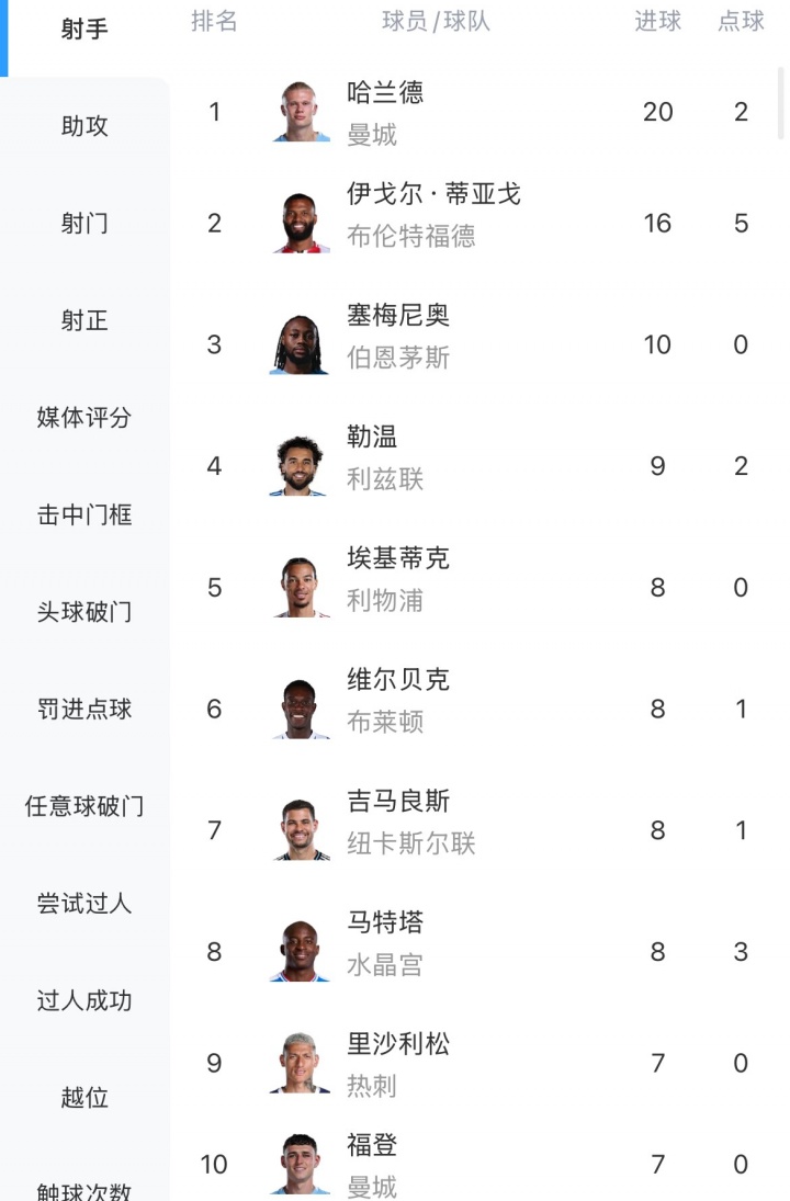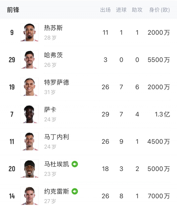 此外,枪手本赛季仍无人进球上双,目前队内射手王是马丁内利,他各赛事打进9球。