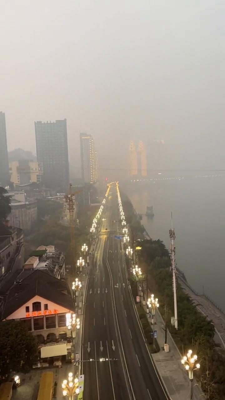 一月十八号上午七点半,重庆桥上站满的人。上午八点半,从跑就开始跑马拉松了。今天是要跑马拉松吗?重庆南滨路给大家看一看。今天可能是中度雾霾或者轻度雾霾,今天晚上要降雨降温。襄阳凤凰要下大雪,想去武汉湖北看雪的可以赶紧订票了。这是重庆,现在已经围了很多人了。