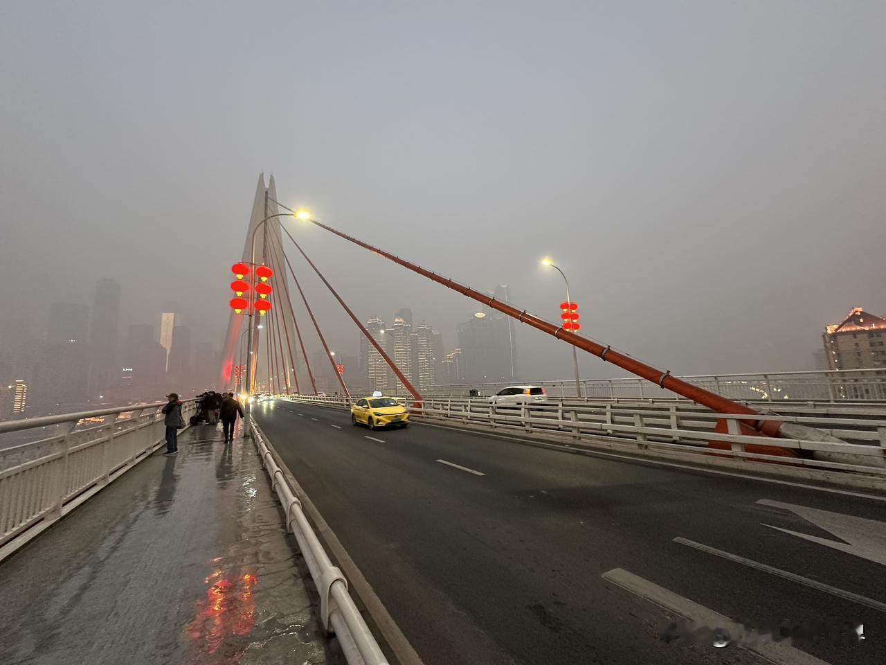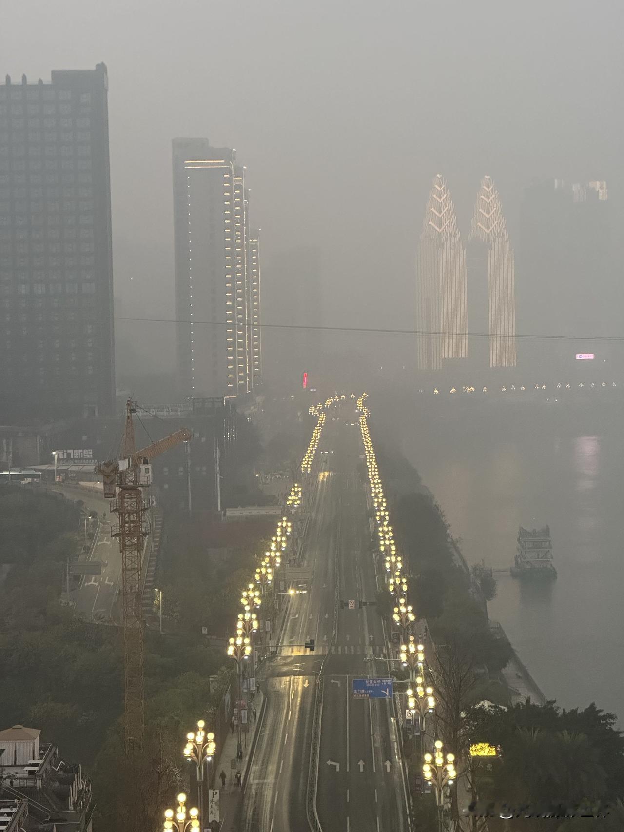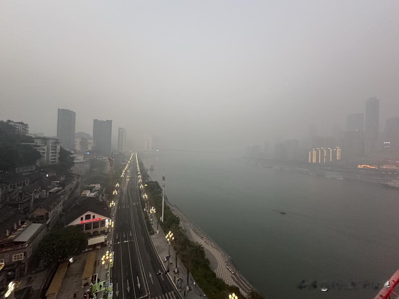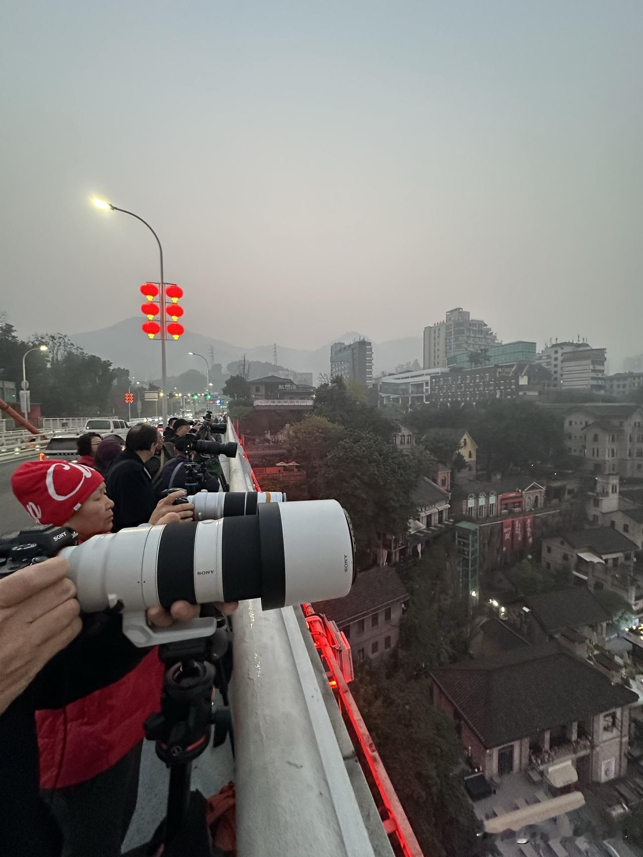 1月18日凌晨7点半,距离日出时间还有15分钟,但是,重庆东水门长江大桥上已经聚集了大批摄影发烧友,大炮林立,严阵以待,守株待兔! 今天上午8点半,发令枪响起时,张水华等2万多名外省市的马拉松跑者,将会在南滨路和巴滨路激烈角逐冠军和奖杯、奖牌、奖金! 重马,重庆马拉松,2026年,即将开跑啦! 此时此刻,重庆主城,雾气弥漫,应该比真正的大雾差点意思吧,虽然天气预报的大雾未出现,但是,也是名副其实的雾都重庆! 今天上午,重庆气温11-13度左右。 今天中午,重庆气温15-1 6度左右。 只是,美中不足,今天重庆空气质量不好,中度污染或者轻度雾霾。 因为昨晚上我没钱在南滨路住酒店,所以今天早上6点我就出门了,哎!真的好累,我是真的很不容易啊!重庆江边照片