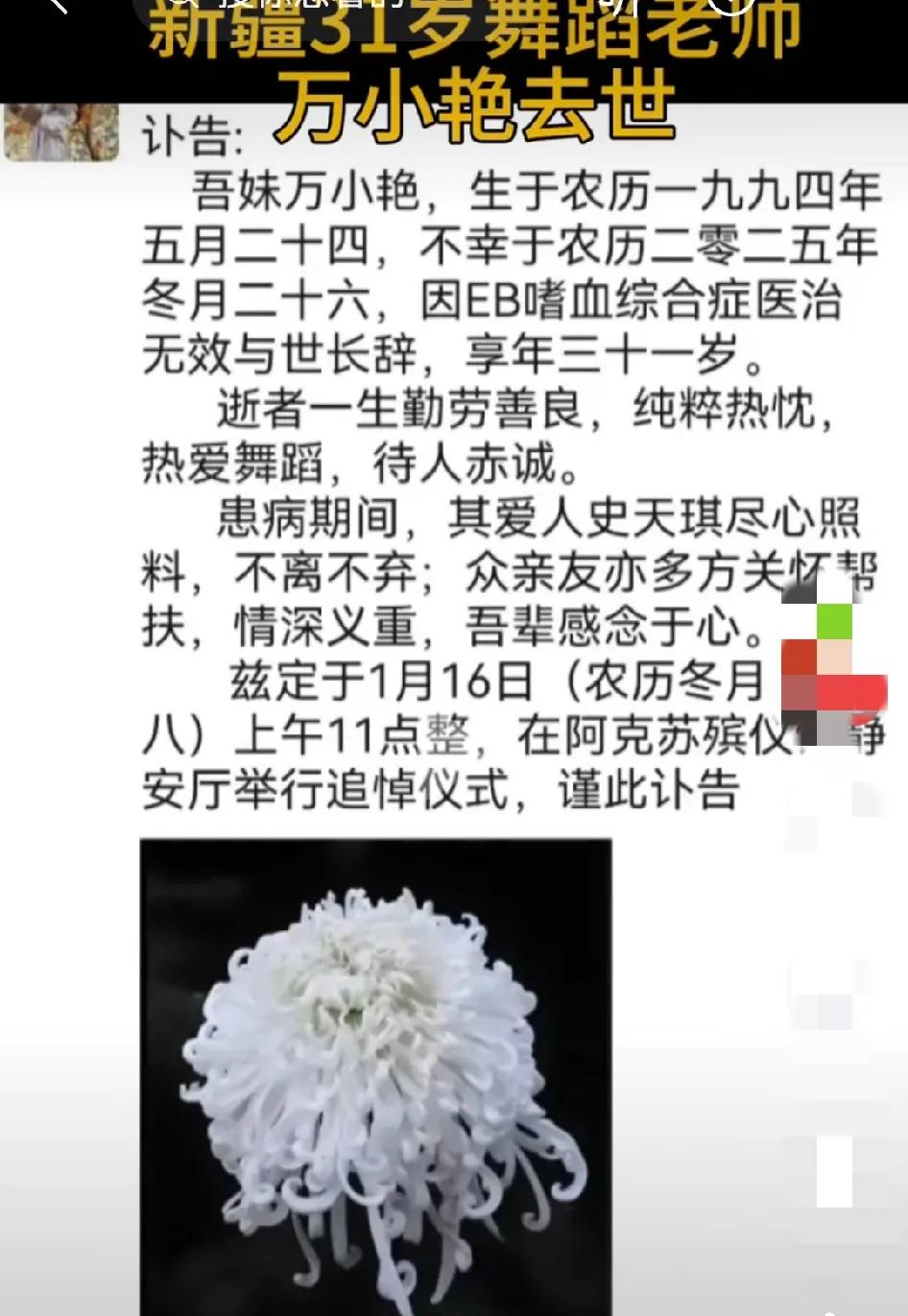 确诊仅2个多月 唉!天妒红颜,红颜薄命呀!这样美丽的女子年轻轻的就离开了人世间!人们永远不知道明天和意外哪个先来!可怜了她的老父母,白发人送黑发人啊!美女老师一路走好,愿天堂没有病痛!逝者已逝生者节哀顺变吧![祈祷][祈祷][祈祷]