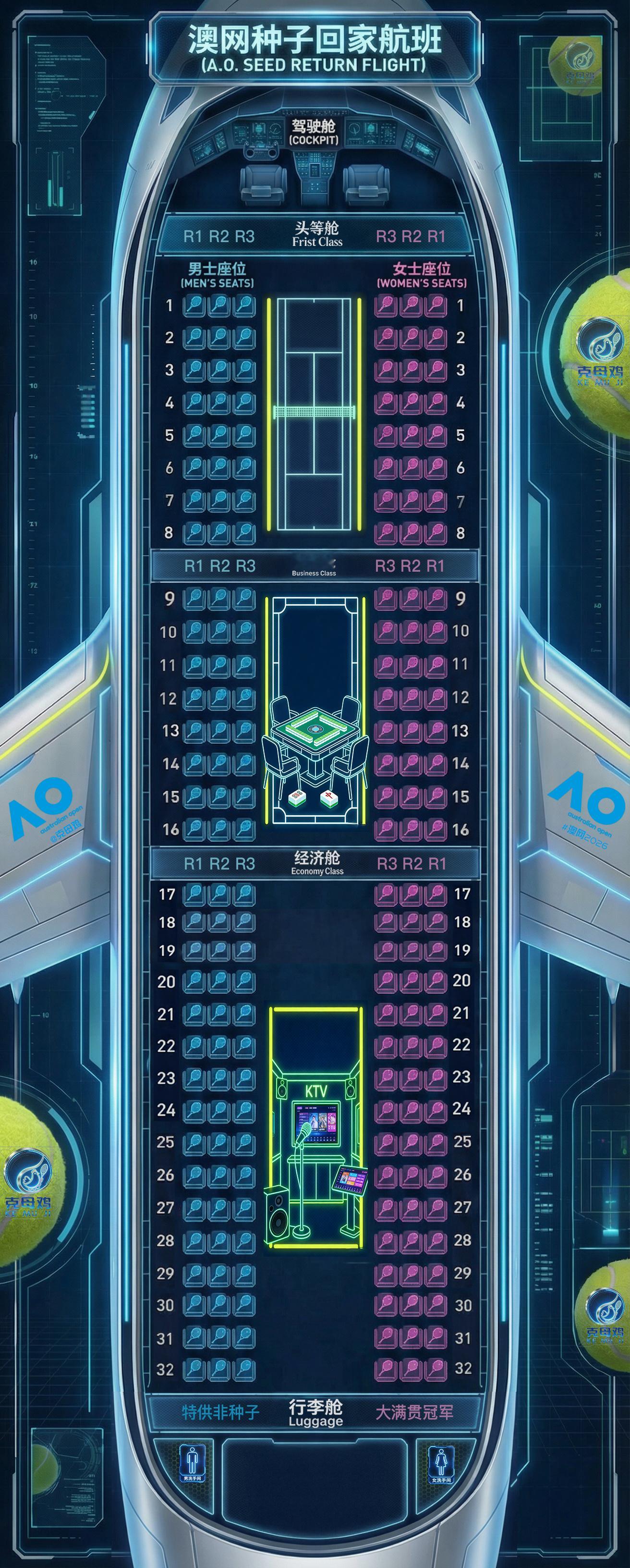 【澳网种子回家航班 装修升级✈️】为了给种子们更好的回家体验,澳网2026 种子回家航班从澳网开始做了内饰升级,更具科技感,提供了更多服务,也可以卖出更好的价钱 一起来看看本趟航班我们的潜在客户名单,大家希望谁成为第一位登机的贵客呢?男子种子名单👨🏻1️⃣阿尔卡拉斯2️⃣辛纳3️⃣兹维列夫4️⃣德约科维奇5️⃣穆塞蒂6️⃣德米纳尔7️⃣阿利亚西姆8️⃣谢尔顿9️⃣弗里茨🔟布勃利克1️⃣1️⃣梅德韦杰夫1️⃣2️⃣鲁德1️⃣3️⃣卢布列夫1️⃣4️⃣达维多维奇-福基纳1️⃣5️⃣卡恰诺夫1️⃣6️⃣门希克1️⃣7️⃣莱赫卡1️⃣8️⃣塞伦多洛1️⃣9️⃣保罗2️⃣0️⃣科博利2️⃣1️⃣沙波瓦洛夫2️⃣2️⃣达尔德里2️⃣3️⃣格里科斯普2️⃣4️⃣林德克内希2️⃣5️⃣勒纳-钱2️⃣6️⃣诺里2️⃣7️⃣中岛布兰登2️⃣8️⃣丰塞卡2️⃣9️⃣蒂亚福3️⃣0️⃣瓦舍罗3️⃣1️⃣西西帕斯3️⃣2️⃣穆泰女子种子名单👩🏻1️⃣萨巴伦卡2️⃣斯瓦泰克3️⃣高芙4️⃣阿尼西莫娃5️⃣莱巴金娜6️⃣佩古拉7️⃣保利尼8️⃣安德列娃9️⃣凯斯🔟本西奇1️⃣1️⃣亚历山德洛娃1️⃣2️⃣斯维托丽娜1️⃣3️⃣诺斯科娃1️⃣4️⃣陶森1️⃣5️⃣纳瓦罗1️⃣6️⃣大坂直美1️⃣7️⃣姆博科1️⃣8️⃣萨姆索诺娃1️⃣9️⃣穆霍娃2️⃣0️⃣科斯秋克2️⃣1️⃣梅尔滕斯2️⃣2️⃣费尔南德斯2️⃣3️⃣施耐德2️⃣4️⃣奥斯塔彭科2️⃣5️⃣巴多萨2️⃣6️⃣雅斯特列姆斯卡2️⃣7️⃣肯宁2️⃣8️⃣拉杜卡努2️⃣9️⃣约维奇3️⃣0️⃣乔因特3️⃣1️⃣卡林斯卡娅3️⃣2️⃣万卓索娃