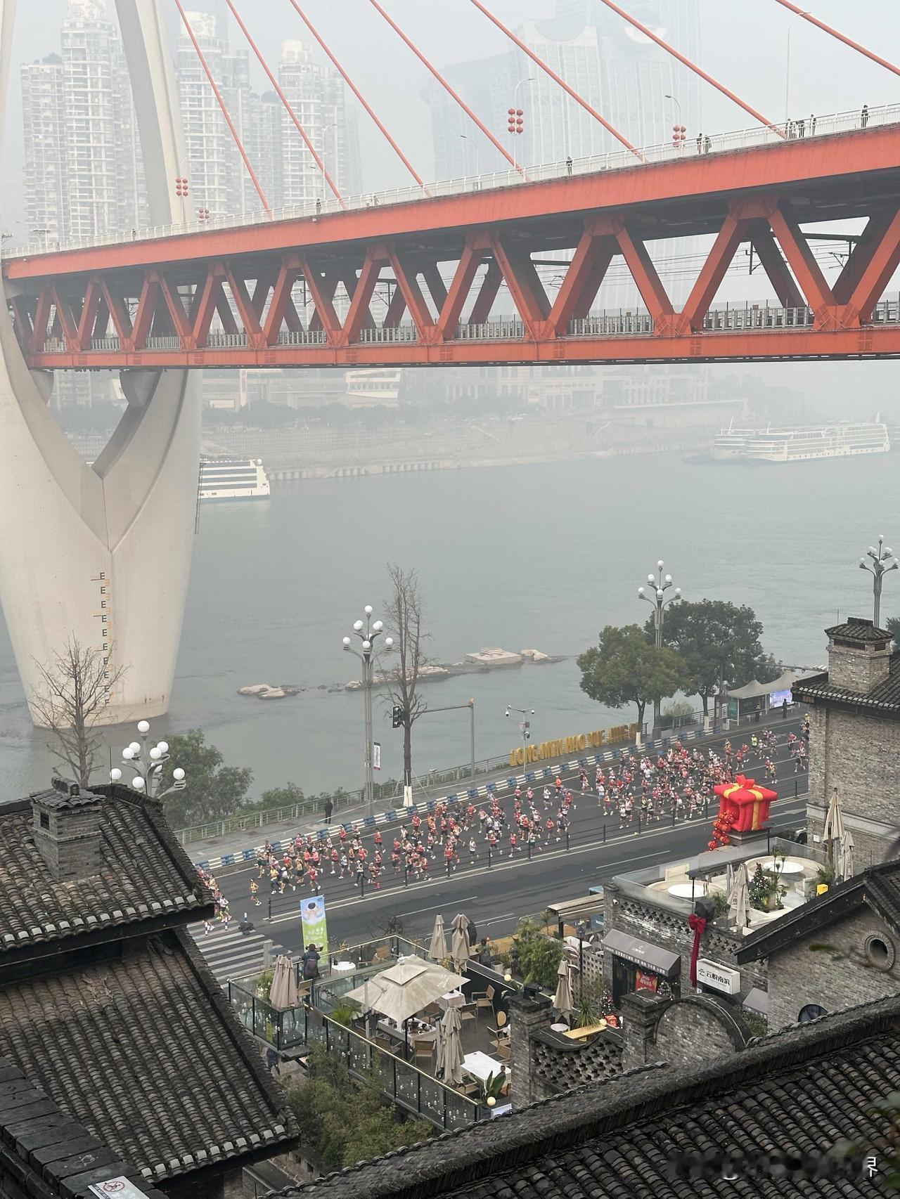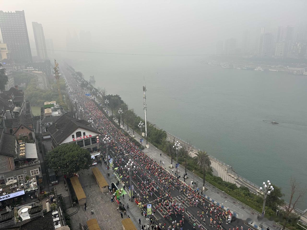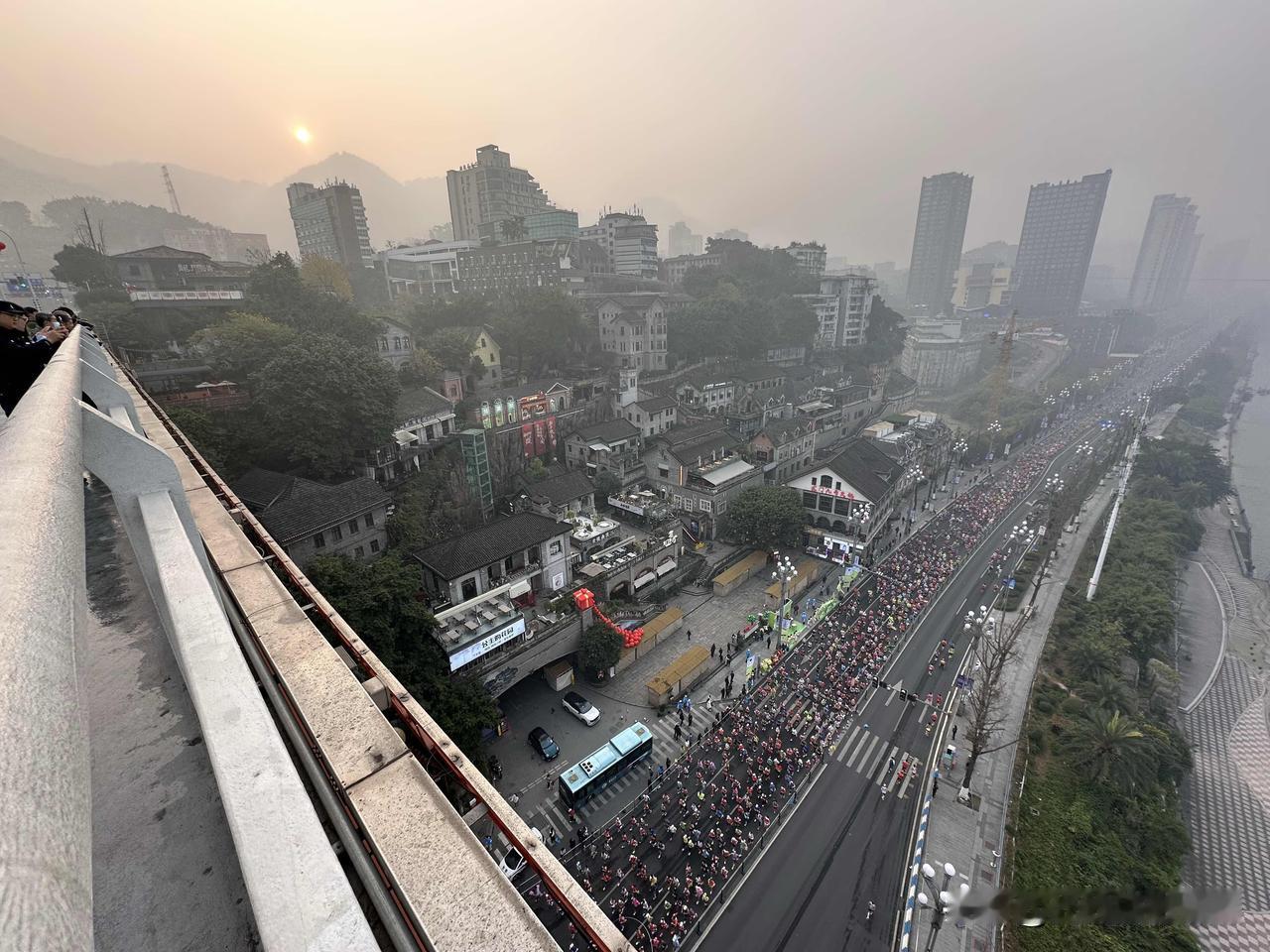 1月18日重庆马拉松赛火热开跑,现场气氛超级美女拉拉队太劲爆啦!啊啊啊!神龙见首不见尾啊!数万人的大军,攻打雾都重庆! 我们站在东水门长江大桥上,俯瞰南滨路,就像是数万只小蚂蚁,太努力啦!加油加油! 今天重庆的中雾仅次于大雾,雾都重庆,魅力四射! 老天爷赏赐给大家一个如梦如幻的雾都重庆,太神了! 不错吧!重马活力十足!