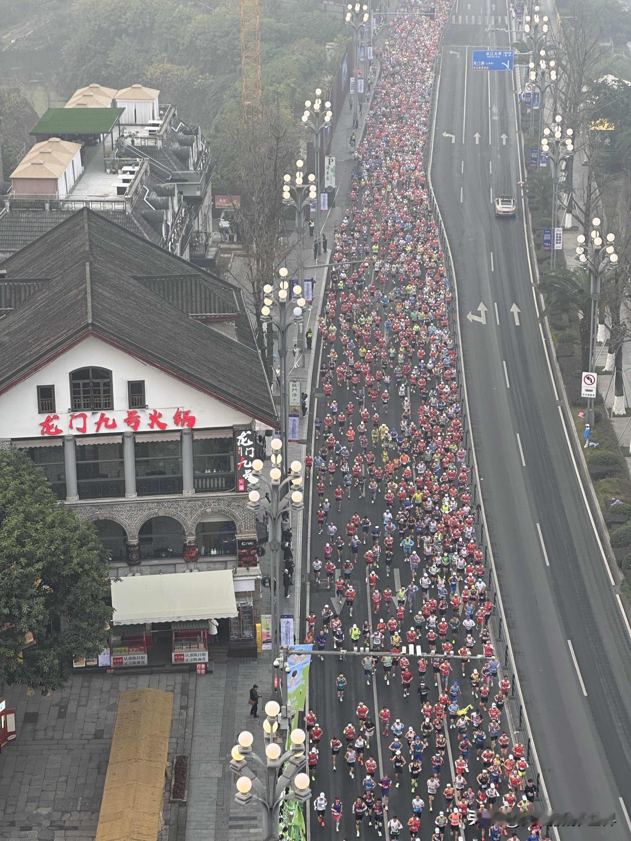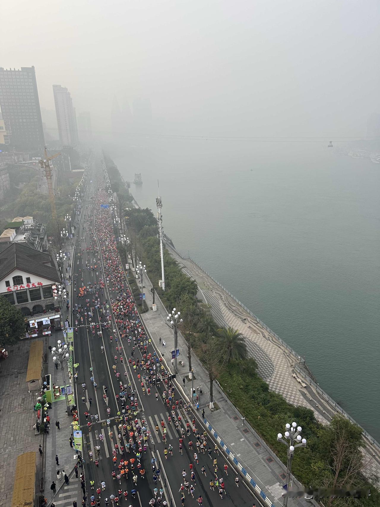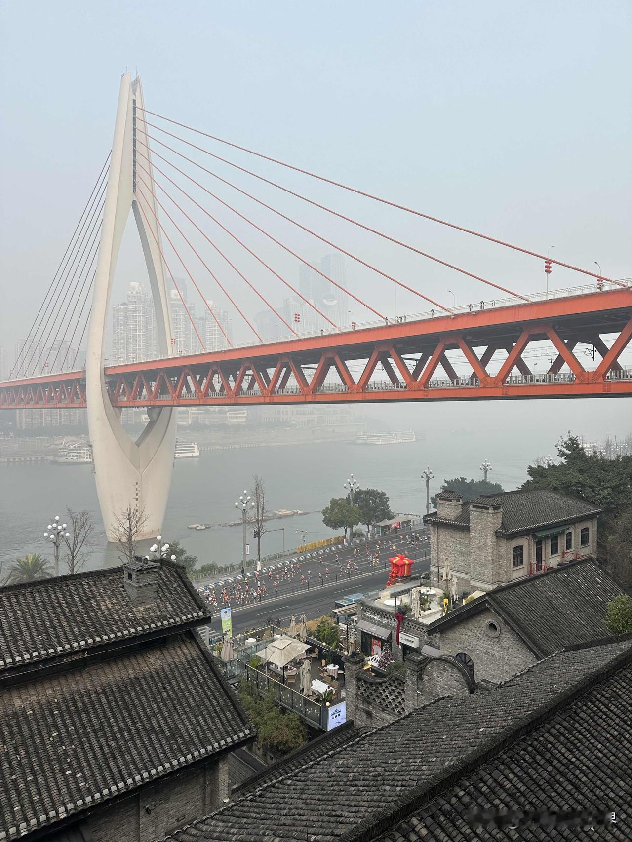 1月18日重庆马拉松赛火热开跑,现场气氛超级美女拉拉队太劲爆啦!啊啊啊!神龙见首不见尾啊!数万人的大军,攻打雾都重庆! 我们站在东水门长江大桥上,俯瞰南滨路,就像是数万只小蚂蚁,太努力啦!加油加油! 今天重庆的中雾仅次于大雾,雾都重庆,魅力四射! 老天爷赏赐给大家一个如梦如幻的雾都重庆,太神了! 不错吧!重马活力十足!