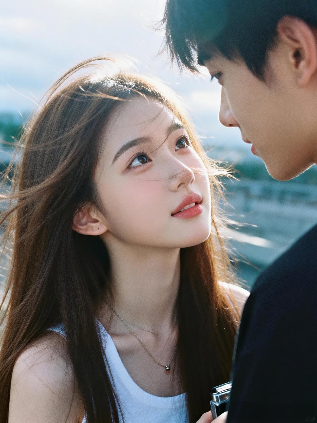曾经有没有一个女孩,用娇羞纯洁、得意幸福的眼神深情凝望着你?可现实是我深爱着她,却又放手了她,多么纯洁无瑕的爱,我现在满是悔恨和无奈! 爱意随风起,风止意难平,遗憾抱终生,永难以释怀。愿天下有情人终成眷属!!!