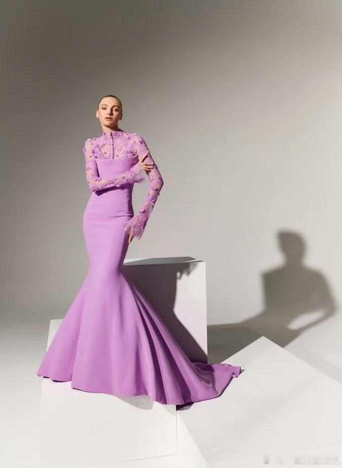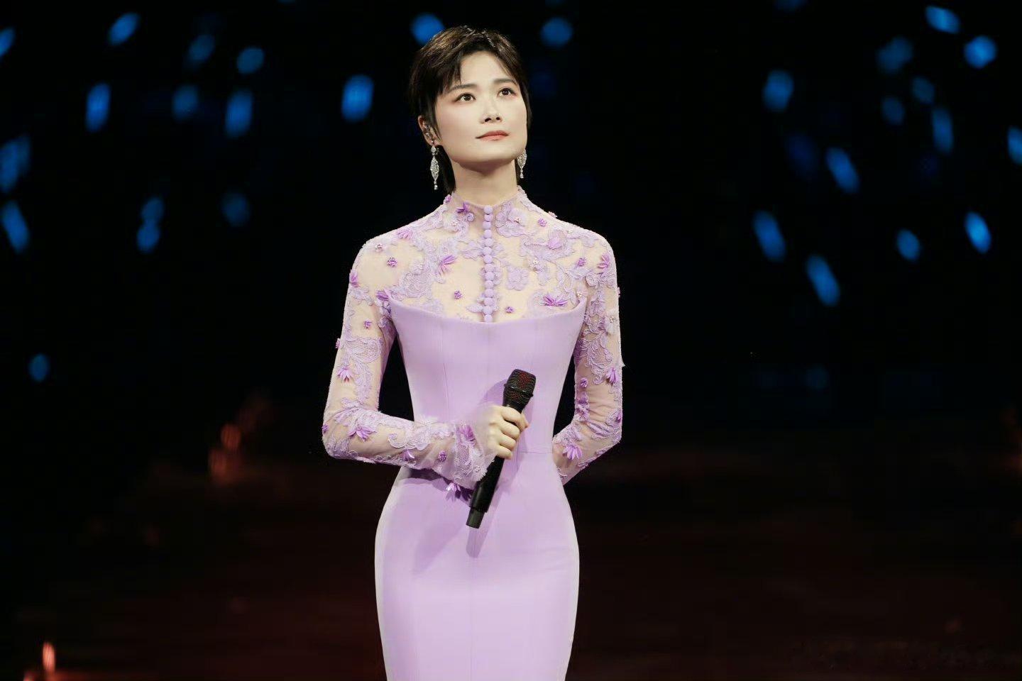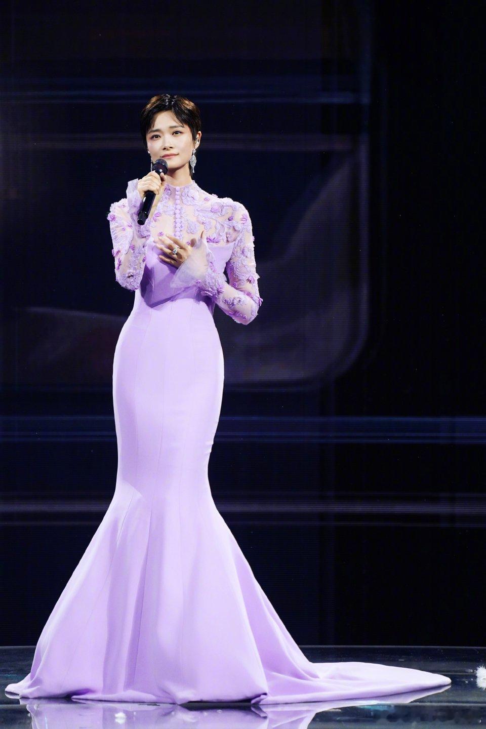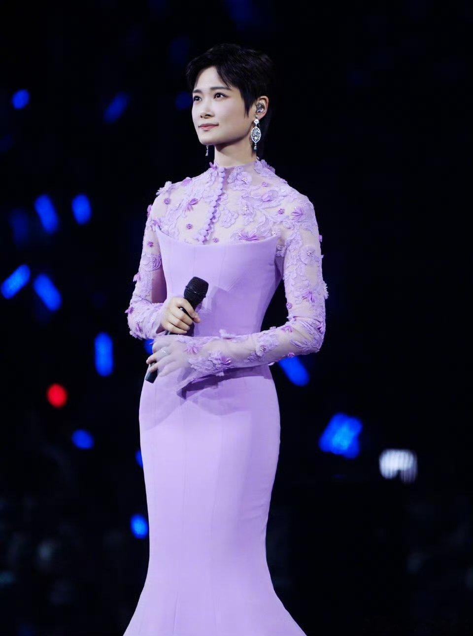 李宇春「2026皇后与梦想巡回演唱会」上身一套Azzi&Osta 24秋冬高定粉紫鱼尾长裙,拖尾显得身材更加修长,各种造型都能驾驭百变女王