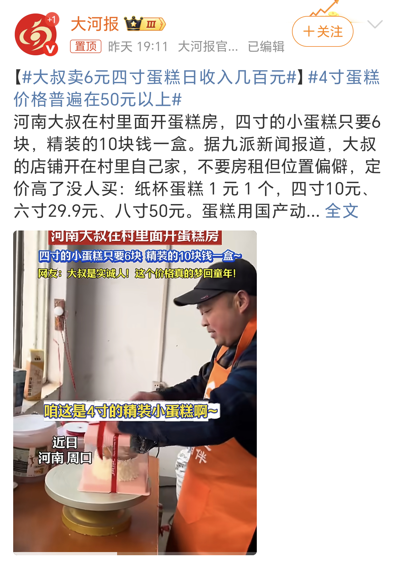大叔卖6元四寸蛋糕日收入几百元日入几百元,这个收益也不错了,这一波能不能把那些昂