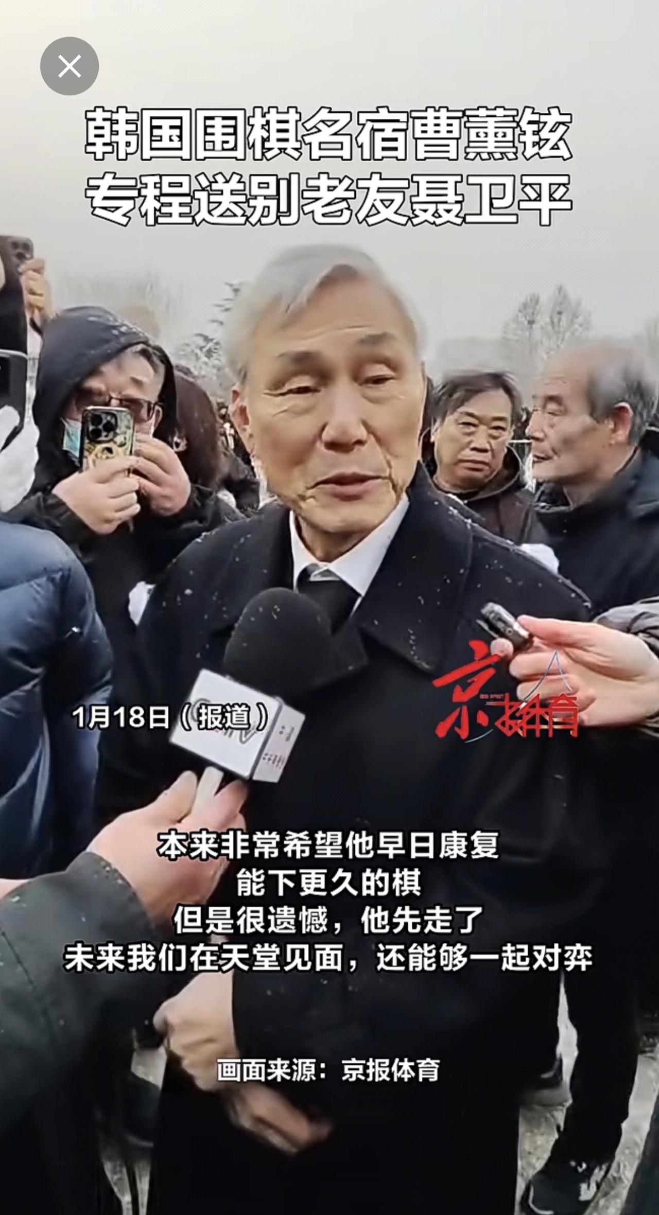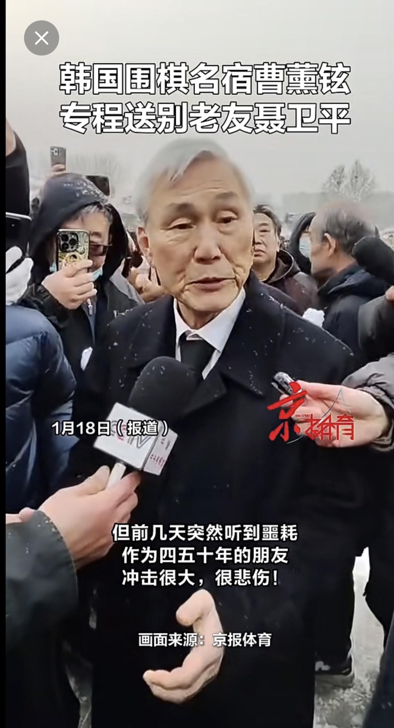 韩国围棋名宿曹薰铉专程送别老友聂卫平:去年3月在新加坡比赛时我们还见过,回国后听说他病倒了,后来听说他好起来了,感觉很欣慰,但前几天突然听到噩耗,作为四五十年的朋友,冲击很大,很悲伤!本来非常希望他早日康复,能下更久的棋,但是很遗憾,他先走了,未来我们在天堂见面,还能够一起对弈!(记者邓方佳 刘平)