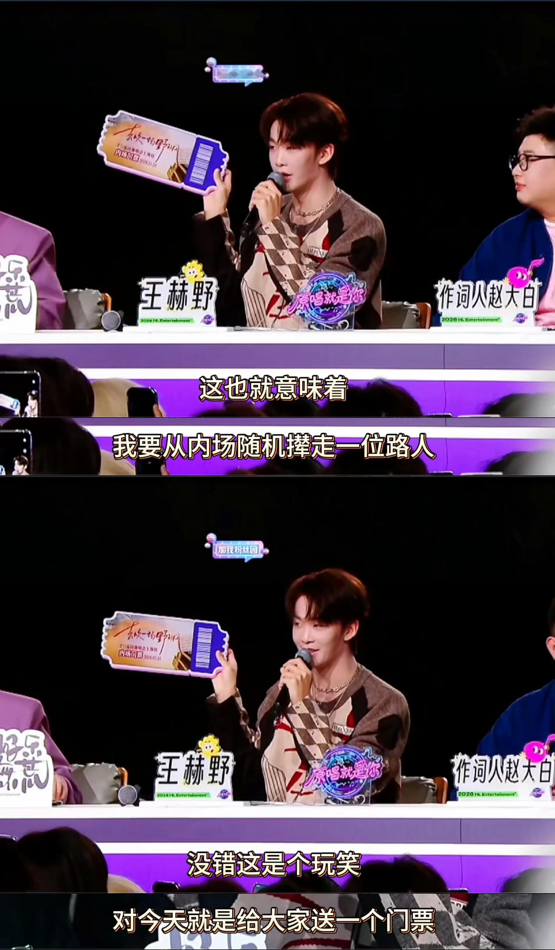 王赫野演唱会随机撵走一位路人 想听王赫野演唱会?先做好被“随机撵走”的心理准备!上海收官站不仅送内场票,还附赠一个公开“风险”:王赫野亲口说要现场撵人!网友:这演唱会看得既期待又刺激……