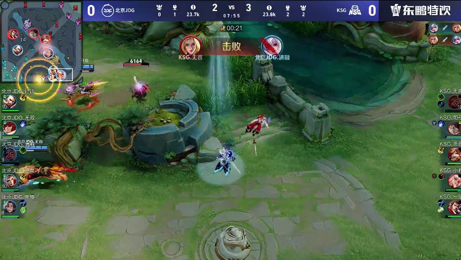 一笙张飞被开反手开出大招壁咚清融小乔,KSG收下JDG中辅二人