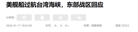 美国公然挑衅?2026年1月17日,时隔数月后,美军重启穿越台湾海峡行动,东部战区做出回应! 针对台湾问题,我国多次表态,台湾是属于中国的领土,绝对不允许任何外部势力干涉。但仍旧有部分国家选择公然支持台独分子,向台独分子作出某种不切实际的承诺。其中美国的举动极其突出,美国不仅对台军售,还采取了一些其他的军事行动。 对于台湾海峡,我国多次表态,台湾海峡属于中国内海,领海,毗连区与专属经济区,不存在任何的“国际水域”概念。 但美国却公然靠近,就在2026年1月16日至17日期间,美国“菲恩”号导弹驱逐舰以及“希尔斯”号海洋测量船,就过航台湾海峡。 此事引起国际高度关注,东部战区就此事在2026年1月17日时,做出回应。据东部战区新闻发言人表示,在美国采取这一行动的时候,东部战区全程跟监警戒。并且采取了一些有效措施,去进行处理。 在回应这件事情的时候,发言人再度重申战区部队时刻保持高度戒备,坚决捍卫国家主权,安全和地区和平稳定。美国的此举是再一次向台独分子作出承诺,也是在中美关系有所缓和的背景下,去试探我国的底线。 美国的这一举动对于我国来,就是一份赤裸裸的挑衅。如果我国没有选择全程监控,那么美国很有可能会持续增强对台湾地区的监测。届时就会助长台独分裂势力的气焰,进一步的阻碍国家的统一。 但我国并没有让美国意图实现,而是全程监测,通过公开回应以及军事应对,去强化我国对台湾海峡的主张。 对此,您怎么看? (信息来源:美舰船过航台湾海峡,东部战区回应-观察者网)