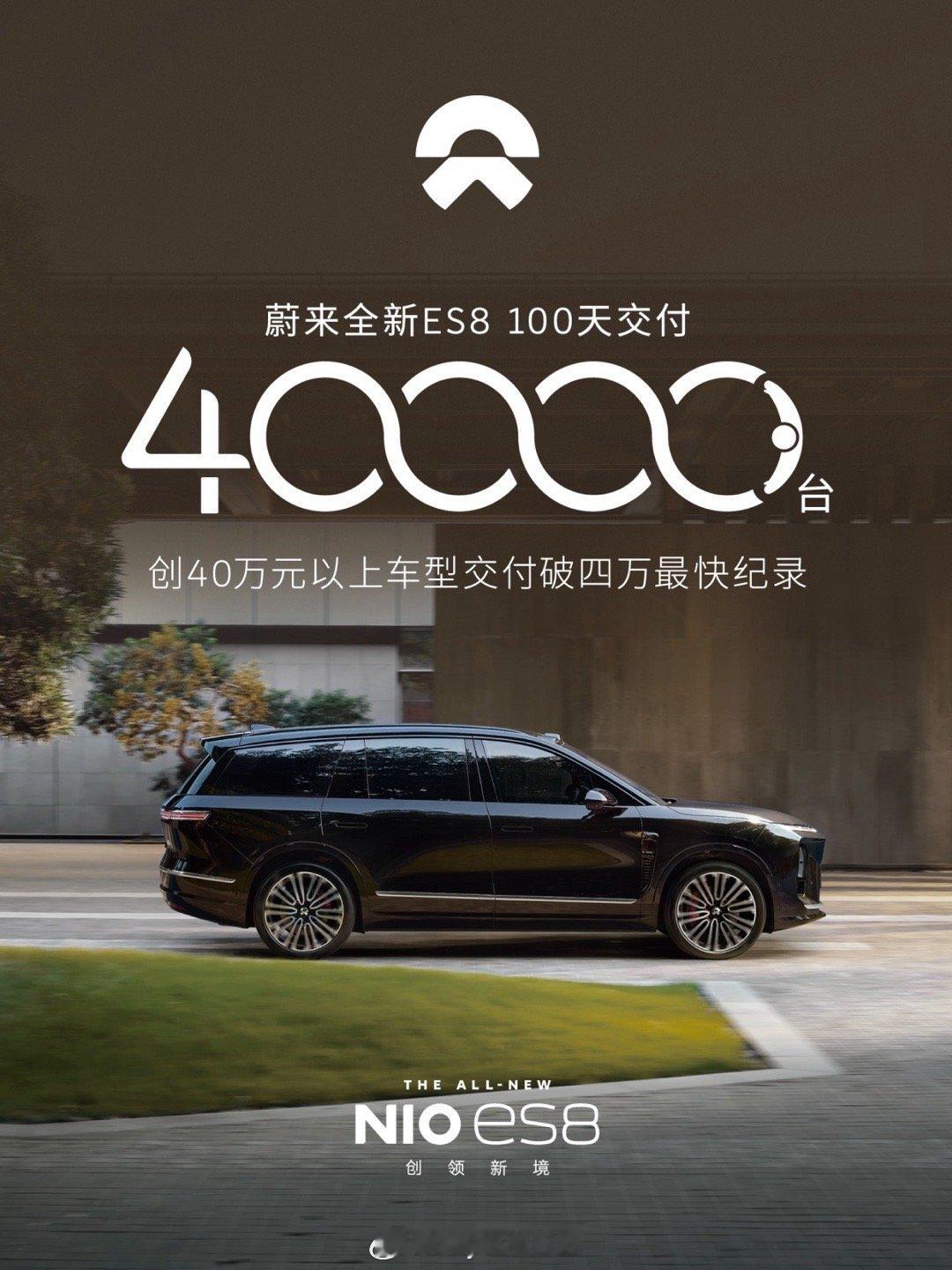 蔚来ES8今天交付五万台!不断刷新40万以上纯电最快交付记录!41天交付1万台7