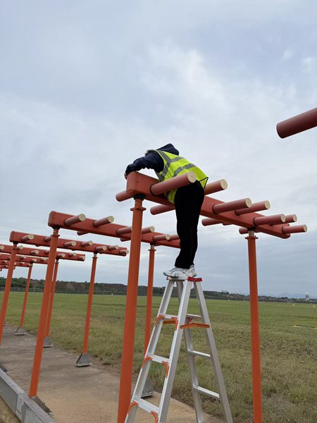旅客流线保障上,航站楼出入口、停车场通道等重点区域已备足防滑垫、警示标识等物资,冰雪天气中将安排专人铺设巡查;车行通道实施预防性融雪剂撒布,并设置积雪堆放区,加强车辆引导。楼宇安全方面,已对挑檐、屋檐等易结冰部位进行全面排查并落实防护措施。