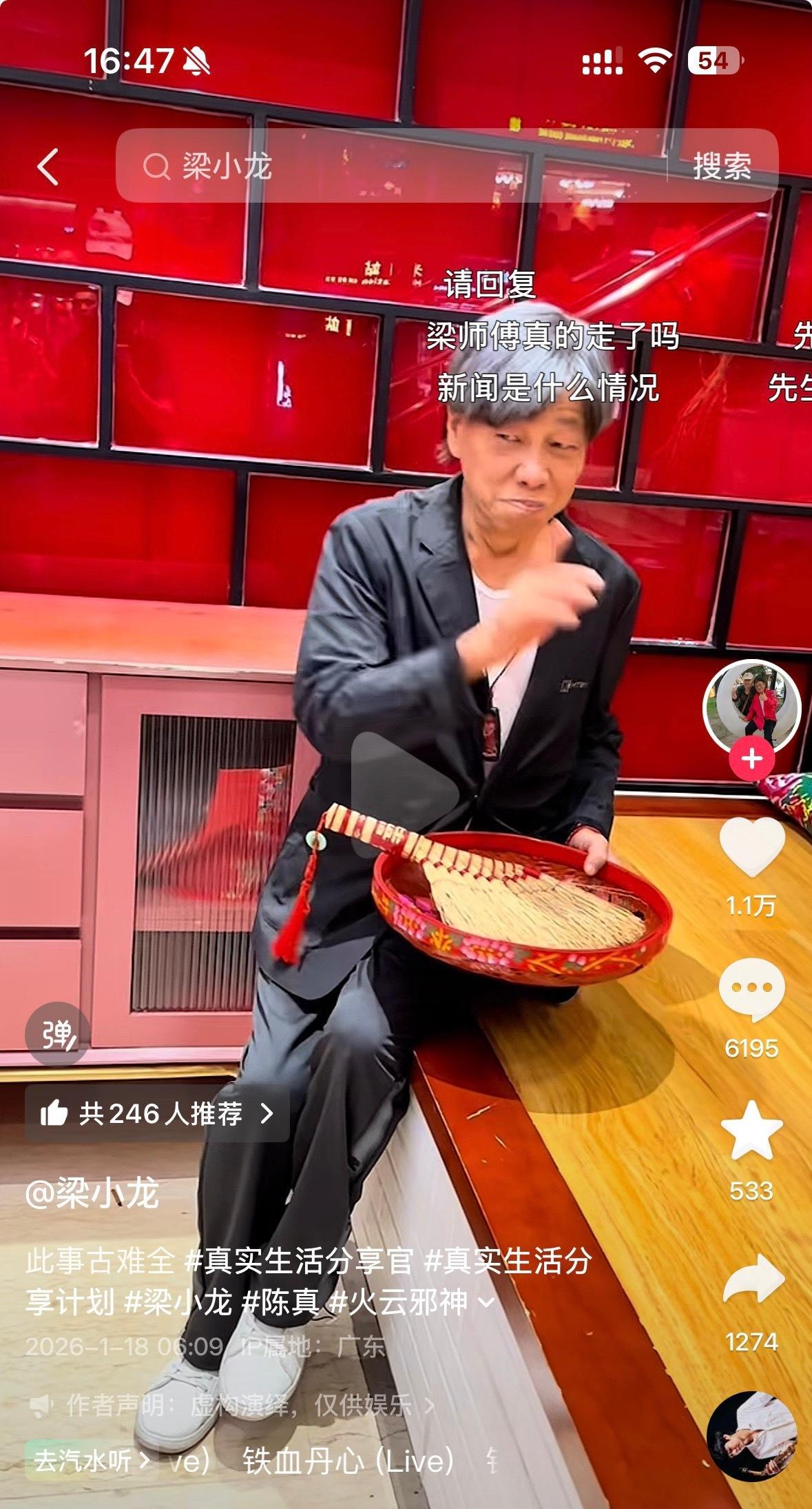“火云邪神”梁小龙于1月14日离世,享年77岁,今天早上他的社交媒体账号刚刚发布了一条新的视频动态。