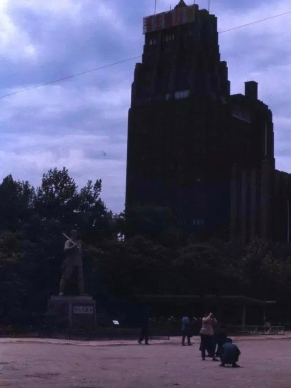 1976年的上海国际饭店那时市区不像现在车流如洪,机动车不多,出行以脚踏车为主。国际饭店周边停了好多的脚踏车!图三是国际饭店边上的人民公园,里面有座张思德的塑像。深夜树洞上海身边事