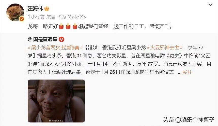 众星悼念梁小龙,周星驰的表达方式最简洁! 演员梁小龙去世,突如其来的消息,让网友猝不及防,纷纷表示悲伤与不舍,众星也发文悼念! 成龙大哥,导演李力持,以及编剧汪海林纷纷发文表示怀念,要么晒合照,要么追忆过往,要么写出平生简介,内心充满对梁小龙的赞赏之情! 作为老搭档,周星驰也晒出一张旧照悼念梁小龙,只不过,方式有点简洁,没有过多的言语,只是简单的一句:“永远怀念梁小龙先生”! 其实,这也很符合星爷的性格,给人感觉不善言辞,看似孤傲,却很感性,有时候,一句话胜过千言万语,一个祈祷的表情,说明一切。 据悉,周星驰曾三次邀约梁小龙参演电影《功夫》,由此可见,非常欣赏对方。 不得不说,梁小龙去世,让人深感惋惜!