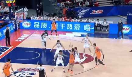 第四节比赛,李弘权三分命中&王哲林送上大帽,还剩6分钟上海领先14分。