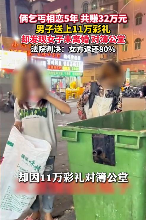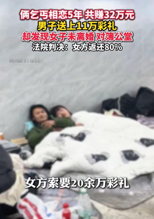 青海西宁,一离异男子和女子确定恋爱关系后,共同沿街乞讨5年,收入了32万元。后男子给女子转账11万元作为彩礼,可没想到女子尚未离婚。男子一怒之下将女子告上法院,要求对方还钱。一审法院判决女子应当返还80%,男子认了这个决定,但女子却提起了上诉,称这11万元不是彩礼,而是共同乞讨的费用以及保姆费,不需要返还。(来源:美丽浙江) 据悉,彭先生来自贵州,张女士来自宁夏,二人是在2020年10月份的青海西宁街头乞讨时相识的。当时彭先生已经离婚,而张女士自称也已经离婚。 在相识后,二人经常一起外出乞讨,有时候还会扮成夫妻乞讨,5年下来共同攒下了32万元存款。 期间,彭先生因和张女士经常扮演夫妻,所以二人逐渐产生了感情,之后便确定了恋爱关系,并以夫妻名义开始了同居生活。 2024年7月份,二人决定结婚了。张女士提出要20万元的彩礼。彭先生则将仅有了11.19万元作为彩礼都给了张女士。 可张女士并不满意,二人多次因彩礼一事吵架,最终感情破裂而分手,而直到分手后,彭先生才发现张女士并未离婚。 彭先生感到被骗了,于是向张女士索要11.9万元的彩礼,但遭到了拒绝。后彭先生一纸诉状告上法院,要求张女士返还彩礼11.9万元。 《关于审理涉彩礼纠纷案件适用法律若干问题的规定》第6条规定,双方未办理结婚登记但已共同生活,一方请求返还按照习俗给付的彩礼的,人民法院应当根据彩礼实际使用及嫁妆情况,综合考虑共同生活及孕育情况、双方过错等事实,结合当地习俗,确定是否返还以及返还的具体比例。 本案中,彭先生是以结婚为目的向张女士支付了11.9万元的彩礼,但因为张女士尚未离婚,所以二人也没有结婚。 既然现在二人感情破裂而分手,那结婚的目的是无法达成了,张女士自然要返还彩礼。 有不少人认为,张女士应当返还全部的彩礼,她这属于骗彩礼。 法院认为,张女士与彭先生交往过程中的确产生了感情,但因为张女士尚未离婚才导致二人分手,所以张女士的行为只是欺骗了彭先生的感情,无证据证明张女士有骗取彩礼的目的。 其次,彭先生向张女士转账的11.9万元中,并非都是彩礼。 由于彭先生是先后多次给张女士转账11.9万元,而其中部分转账具有表达爱意的备注,所以法院认为这部分是为了增进感情的转账,按照相关规定这部分金额并不属于彩礼。 综上,法院酌情判决张女士应当返还彭先生80%的彩礼,即8.9万余元。 法院判决后,彭先生认为二人毕竟共同生活了5年,也有了感情,所以认可了法院的判决,但张女士并不认同,她认为彭先生转账的11.9万元属于二人共同乞讨所得,以及保姆费。因此,张女士提起了上诉。 二审法院认为,民事诉讼法的解释第90条规定,当事人对自己提出的诉讼请求所依据的事实或者反驳对方诉讼请求所依据的事实,应当提供证据加以证明。在作出判决前,当事人未能提供证据或者证据不足以证明其事实主张的,由负有举证证明责任的当事人承担不利的后果。 张女士主张这11.9万元并非彩礼,而是共同乞讨的收入以及保姆费,但张女士并未提交证据证明保姆费的存在,而乞讨共同收入这一主张也遭到了彭先生的反驳。 彭先生提交了转账凭证以及聊天记录等,足以证明这8.9万元具有彩礼的性质。 最终,二审法院判决驳回了张女士的上诉请求,维持了一审判决。