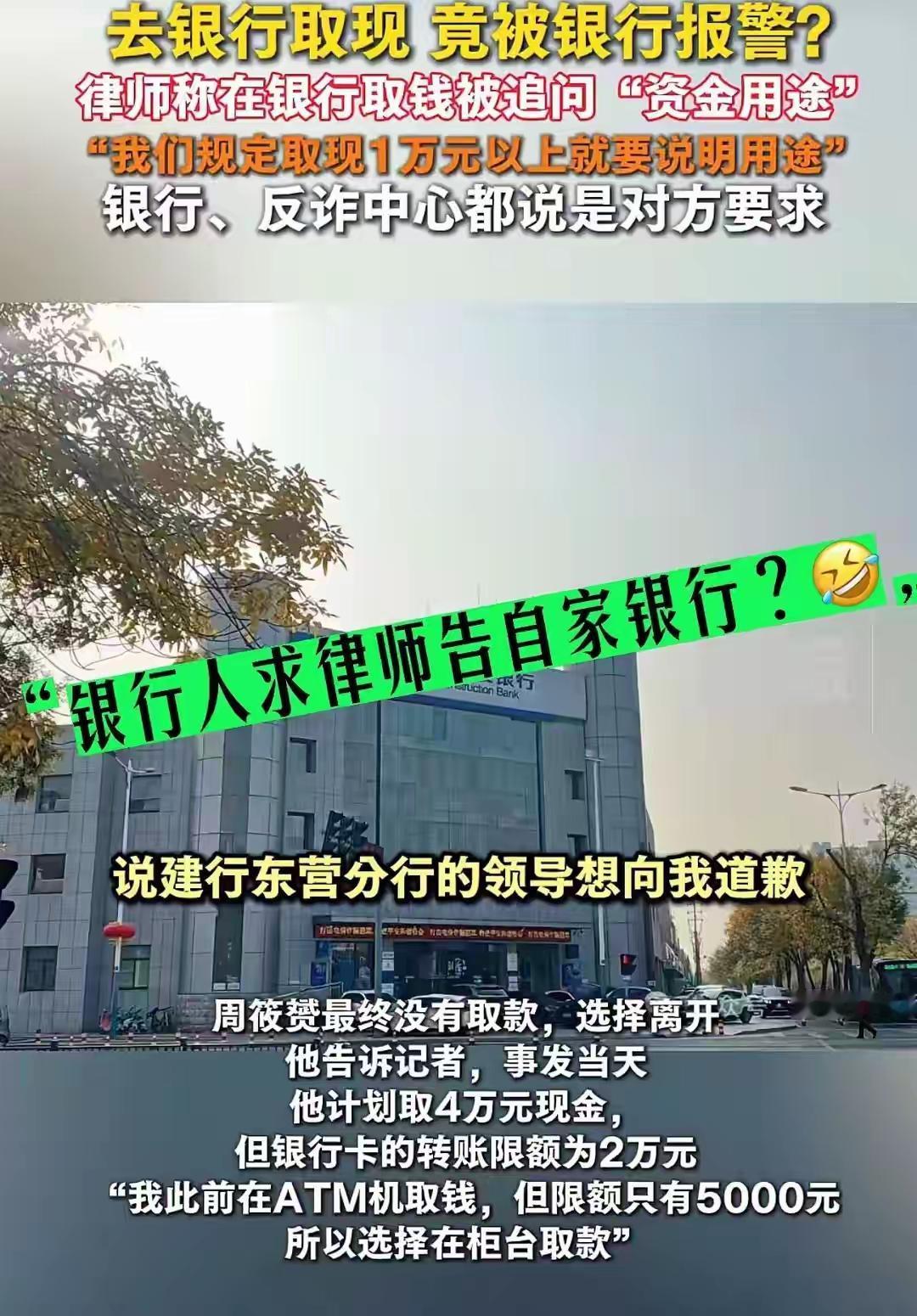 2025年11月,山东东营律师周筱赟取款4万元时,遭银行超额盘问用途及过往流水,银行还当场报警,他无奈放弃取款。2026年1月18日,此案正式获法院立案,案由为侵权责任纠纷,将于2月开庭审理。周筱赟诉称银行违背“取款自由”原则,诉求公开道歉,冀望借此规范基层银行反诈执行,杜绝层层加码乱象。