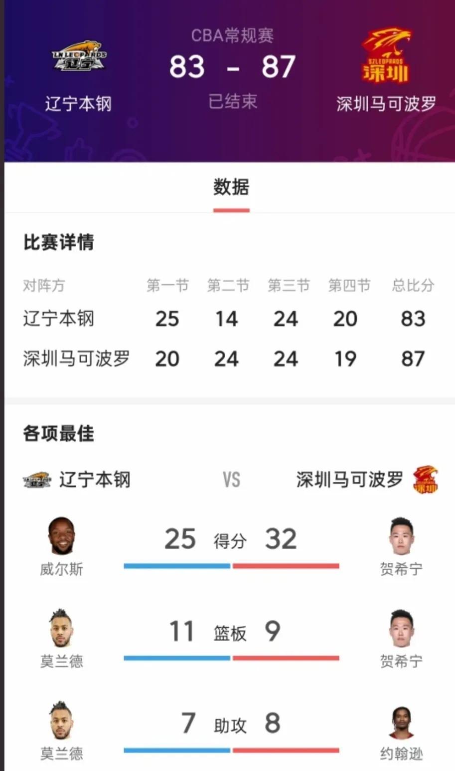 深圳客场87-83击败辽宁,小钢炮贺希宁32分,一如既往稳定。 杨鸣:听说你老家是辽宁吧,没有家乡情结啊。 郑永刚:想当年我爷爷闯关东,来到辽宁遇到小芳姑娘,就是我奶奶了,一见钟情,就定居了下来,我小时候就闯荡江湖,现在定居深圳,要说祖籍是哪里,中华大地都是啊。 杨鸣:不甘心啊,输给深圳。 郑永刚:深圳队号称专杀强队,嘿嘿,你们是强队。 杨鸣:是吗,这样说心情好多了。 郑:哼,装帅去吧,不过辽宁究竟是不是强队呢?反正这场我们是赢了。