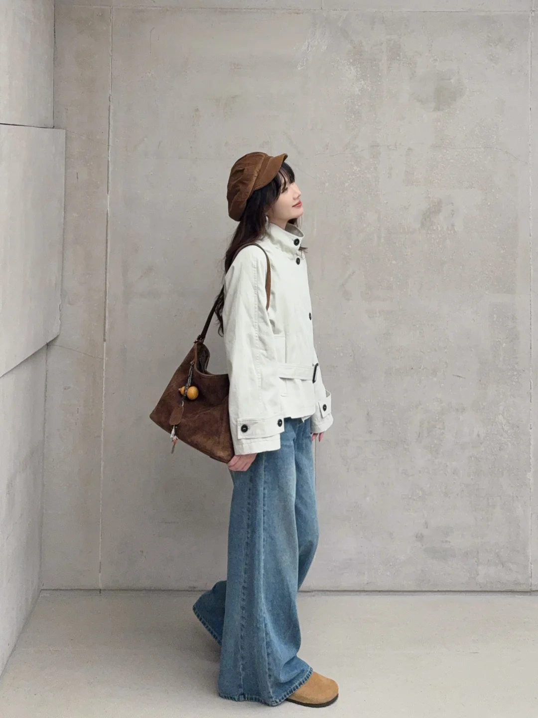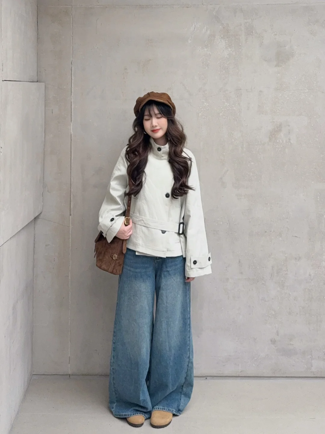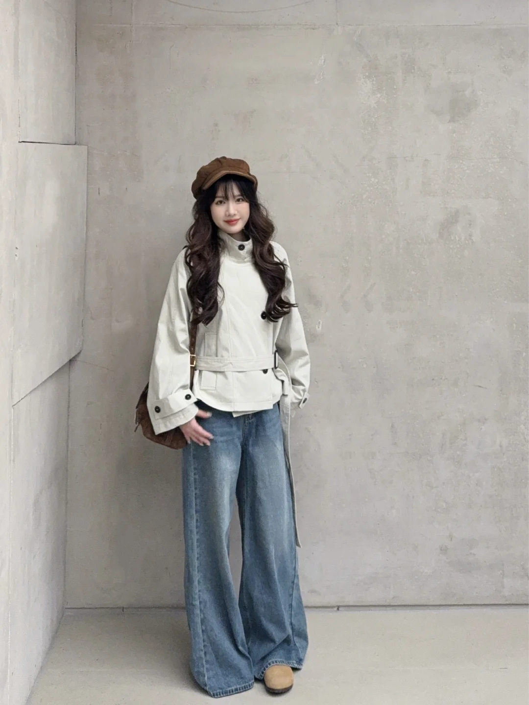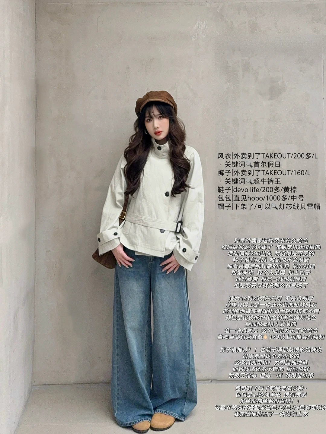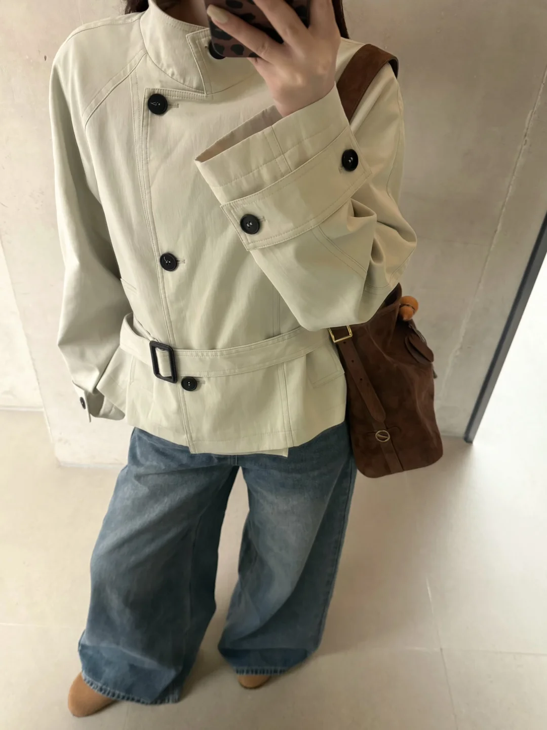 168/106 纯分享 理性种草 收到了期待很久的米灰色风衣 今年尝试了新版型哈哈 第一次尝试这种 偏短款的立领风衣 很有气场 很爱 下半身比较适合搭配拖地裤 更松弛慵懒 蓝色米白色黑色卡其色棕色都可以 如果是要搭配短裙 可以再搭配黑色的骑士靴 比较适合小个子 更显比例 这种风衣很显气场 出去玩的话可以再搭配一副墨镜 内搭除了像我一样搭配米白色 还可以搭配棕色黑色 配饰的话个人觉得棕色黑色系比较好