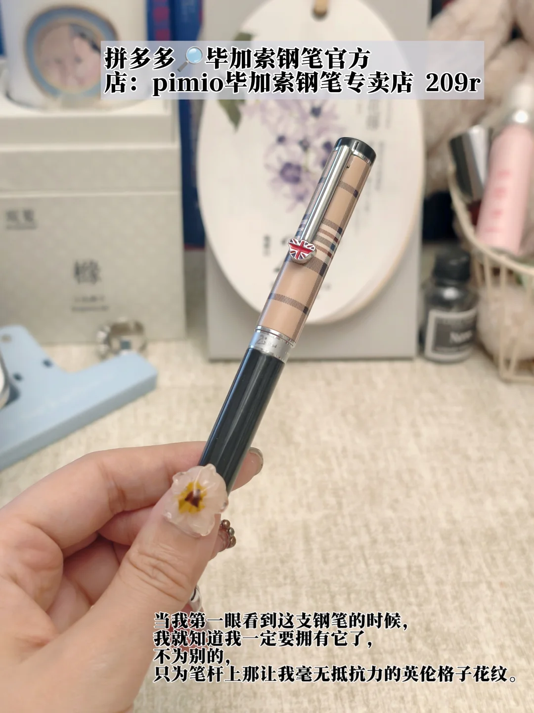 当我第一眼看到这支钢笔的时候,我就知道我一定要拥有它了,不为别的,只为笔杆上那让我毫无抵抗力的英伦格子花纹。从中学时代就开始钟情的毕加索钢笔,带给我的书写愉悦感从来没让人失望过,每次用它写字,一股莫名的仪式感都会在心里荡漾开来。