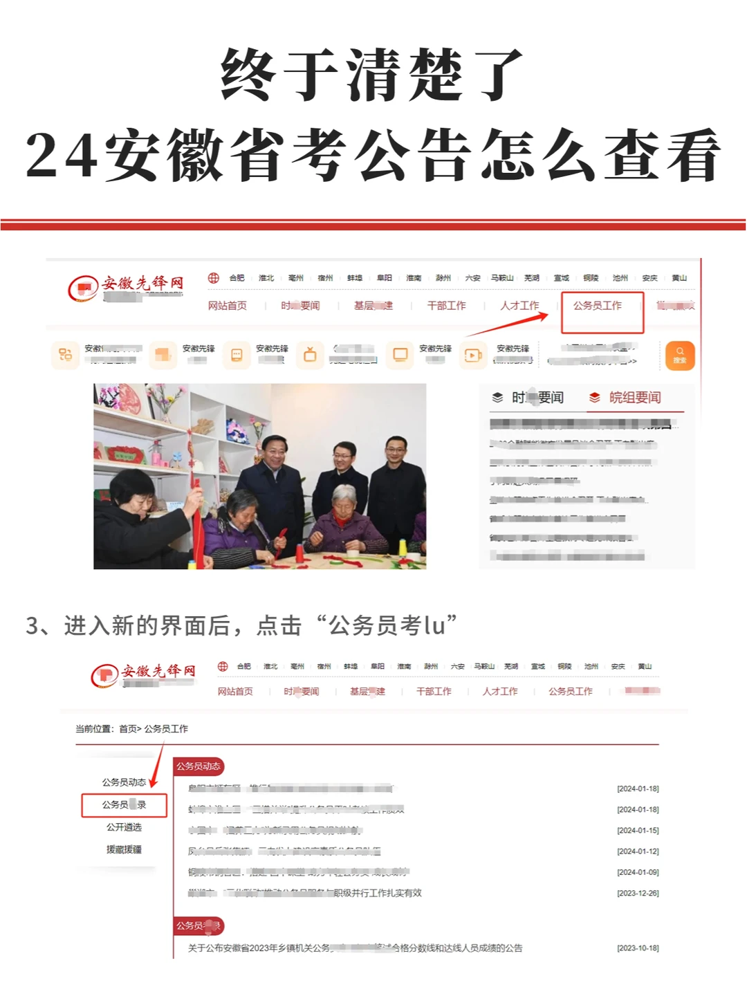 1️⃣浏览器搜索并进入安徽先锋网,点击“公务员工作”栏