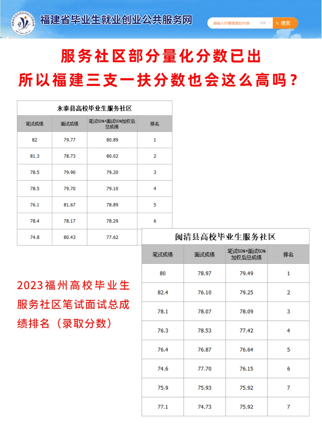 💛福州高校毕业生服务社区是笔试+面试,第1名分数都在80左右