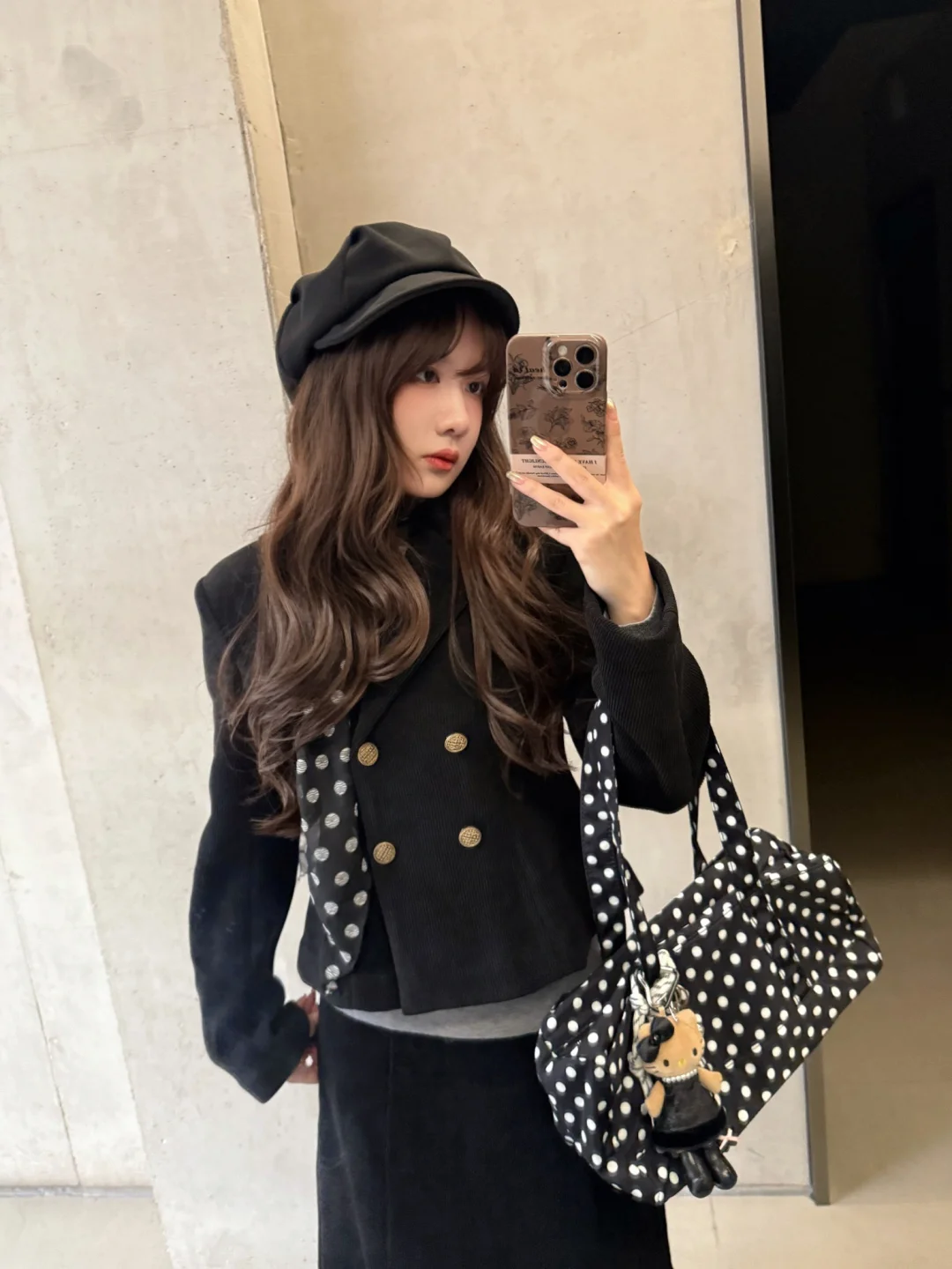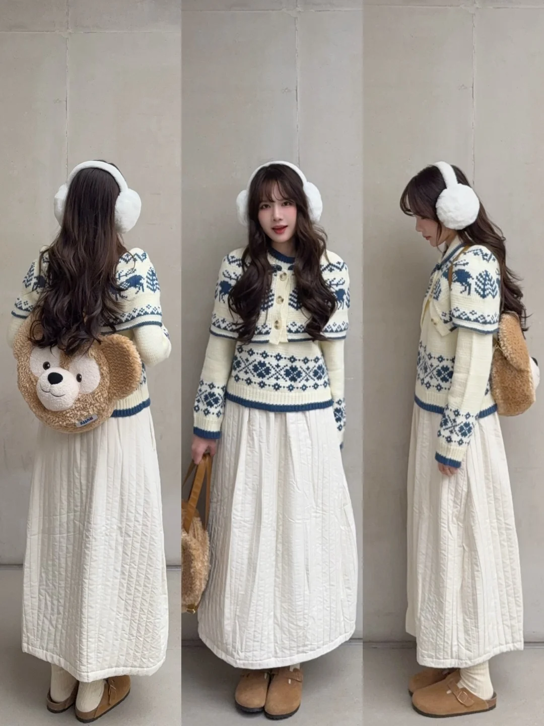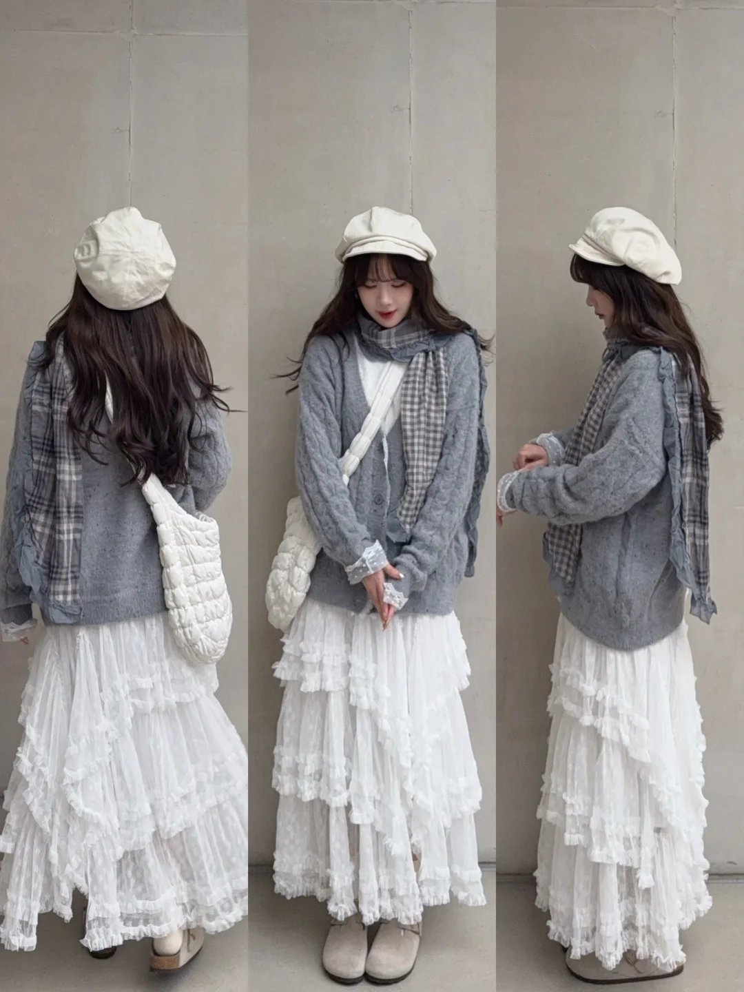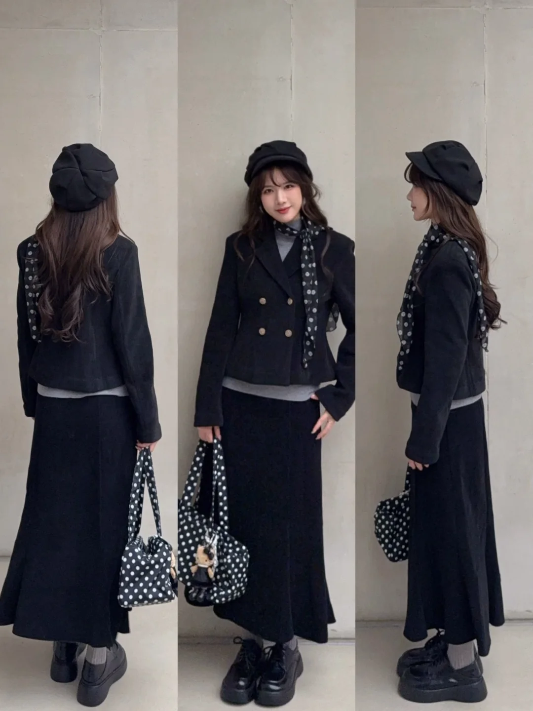 168/106 一期适合秋冬搭配内搭的小裙子套装~ 杂七杂八都分享了一点 毛衣的合集我也有准备 后面再陆陆续续分享~ 这三套都挺乖的 也都是很和谐的秋冬配色(*´ω`*) 第一套可以当做米白色蓝色驼色系外套的内搭 单穿拍照也很好看 最近想去迪士尼的姐妹 可以考虑这种搭配 好看又元气~ 第二套是很正儿八经的套装 版型真的很好!特别显瘦 很优雅的黑白灰配色 单品拿出来也很适合通勤日常搭配 去除配饰就是很简单日常的搭配 也适合通勤 第三套是我爱的灰白配色 秋冬大家可以试一下这种蓬蓬半身裙 搭配一些毛衣开衫真的会不一样 比基础款的半裙更特别一些 很梦幻 而且也加绒 挺厚实的 内搭穿厚的打底裤也看不出来