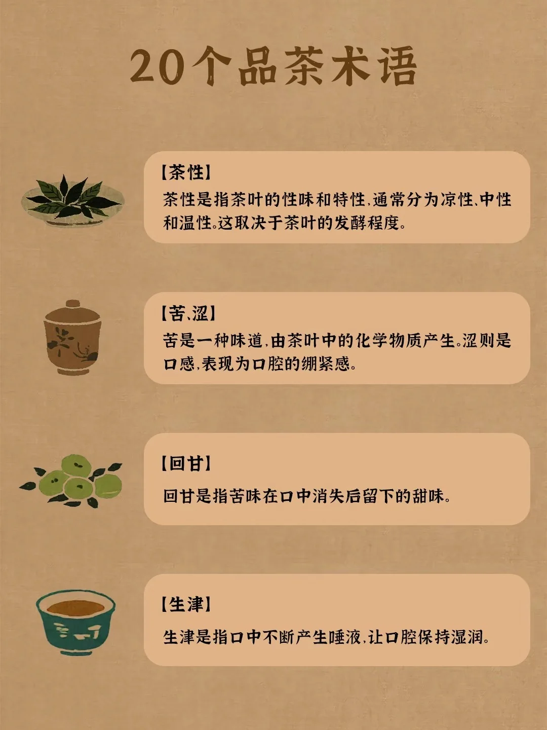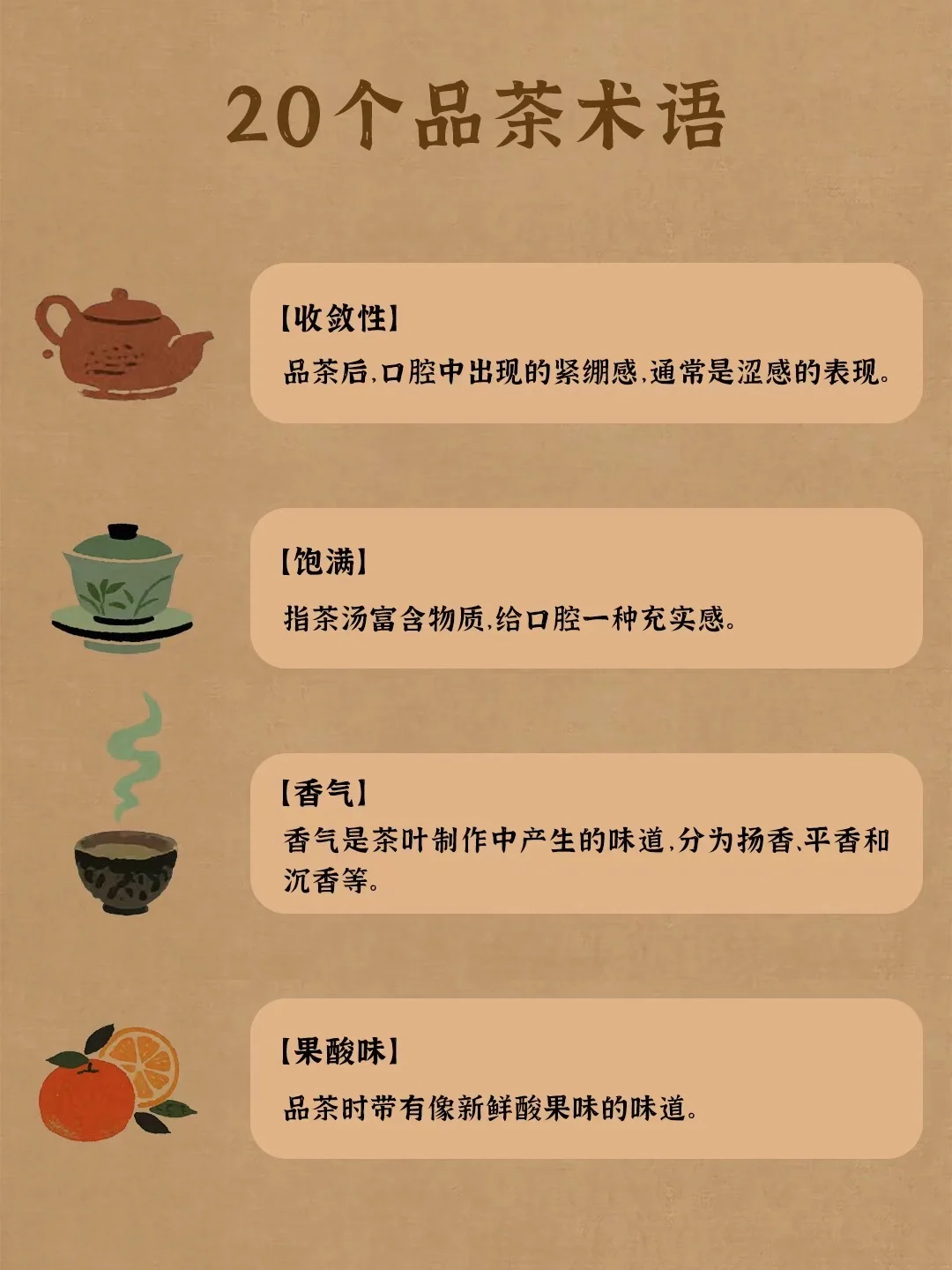 收敛性:品茶后,口腔中出现的紧绷感,通常是涩感的表现。