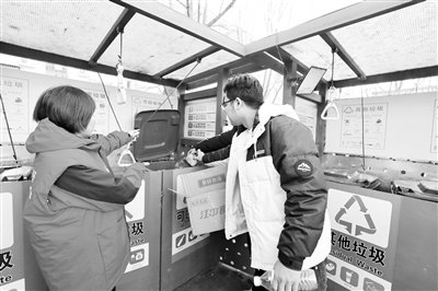日前,丰台区南苑街道红房子社区“分类导师”值守在桶站前,通过面对面指引、解释的形式,向居民耐心讲解垃圾分类的基本知识和分类方法,引导居民正确分类投放,有效提升垃圾分类质量。
