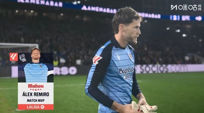 做出8次扑救!雷米罗当选皇家社会vs巴萨全场最佳球员