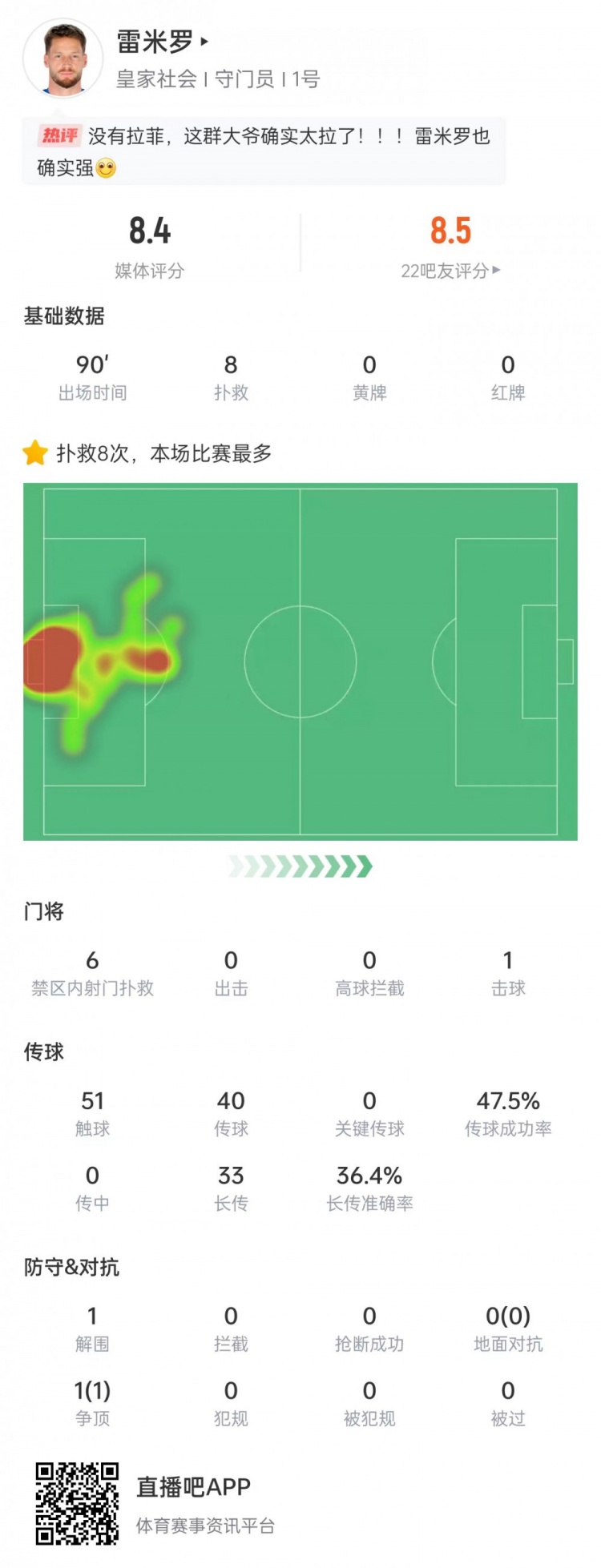 雷米罗本场比赛数据: