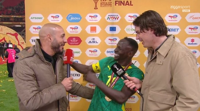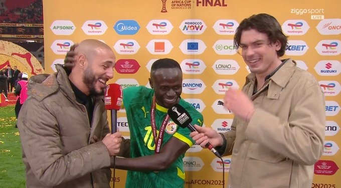 马内当选本届非洲杯最佳球员,赛后努尔丁·阿姆拉巴特采访马内,后者在采访进行到一半时才意识到记者是摩洛哥足坛名宿,随后马内与努尔丁·阿姆拉巴特拥抱。
