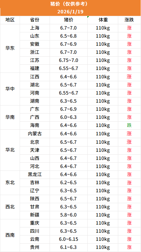 今日猪价继续上涨,东北地区标猪主流价6.4-6.5元,河南大场今日出栏价格下调1-3毛,价格在13.2-13.8元,其它继续上涨2-4毛。广东大场上涨2毛/公斤,挂牌价格在14元,其它南方猪场也跟涨。散户整体继续偏强,仍旧是300-350斤体重价格最好。目前看,河南一哥落价难以改变短期偏强趋势。有猪的多关注当地价格,腊月之后上涨幅度收窄,即可逢高择机出栏。关注我带你了解最新的猪价行情。