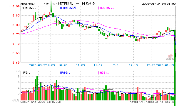 1月16日,恒生科技ETF指数(513580)跌0.26%,成交额8760.27万元。当日份额增加1000.00万份,最新份额为72.47亿份,近20个交易日份额增加1.79亿份。最新资产净值计算值为55.30亿元。
