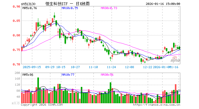 1月16日,恒生科技ETF(513130)跌0.40%,成交额43.59亿元。当日份额增加1.26亿份,最新份额为625.54亿份,近20个交易日份额增加28.83亿份。最新资产净值计算值为473.60亿元。