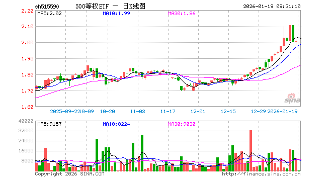 1月19日,500等权ETF(515590)开盘跌0.45%,报1.996元。500等权ETF(515590)重仓股方面,巨人网络开盘涨3.33%,先导智能跌0.66%,指南针跌0.42%,英维克跌2.46%,胜宏科技跌3.97%,东阳光涨1.20%,长川科技涨0.36%,江波龙跌2.82%,卧龙电驱涨1.37%,华工科技跌0.71%。