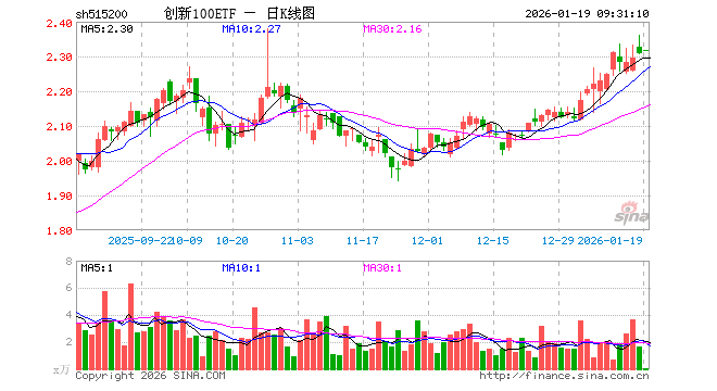 1月19日,创新100ETF(515200)开盘涨0.39%,报2.316元。创新100ETF(515200)重仓股方面,中际旭创开盘跌1.94%,恒瑞医药跌0.23%,比亚迪涨0.99%,寒武纪跌0.14%,海光信息涨0.68%,北方华创涨1.15%,澜起科技跌0.76%,汇川技术涨0.00%,迈瑞医疗涨0.00%,中兴通讯跌0.47%。