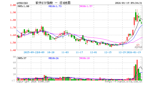 1月19日,软件ETF指数(560360)开盘跌1.12%,报1.760元。软件ETF指数(560360)重仓股方面,科大讯飞开盘涨0.13%,同花顺跌0.27%,金山办公跌0.93%,指南针跌0.42%,恒生电子跌0.81%,润和软件跌0.05%,三六零跌0.92%,拓维信息跌0.79%,用友网络涨0.00%。