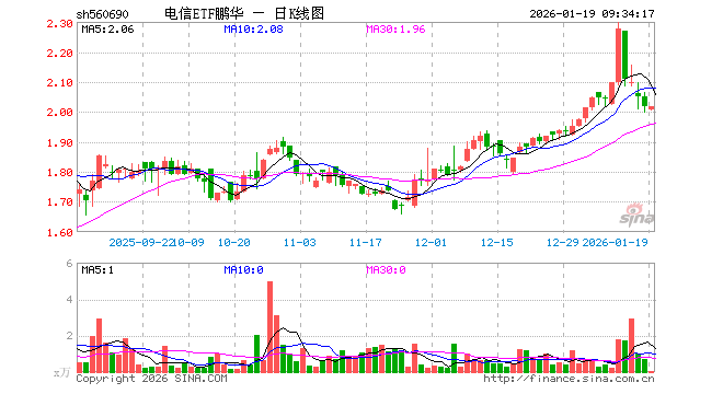 1月19日,电信ETF鹏华(560690)开盘跌0.69%,报2.005元。电信ETF鹏华(560690)重仓股方面,中际旭创开盘跌1.94%,新易盛跌1.25%,中国联通跌0.39%,中国移动涨0.00%,中国电信涨0.17%,银之杰跌1.13%,中国卫通跌2.64%,中兴通讯跌0.47%,天孚通信跌2.08%,紫光股份涨2.73%。